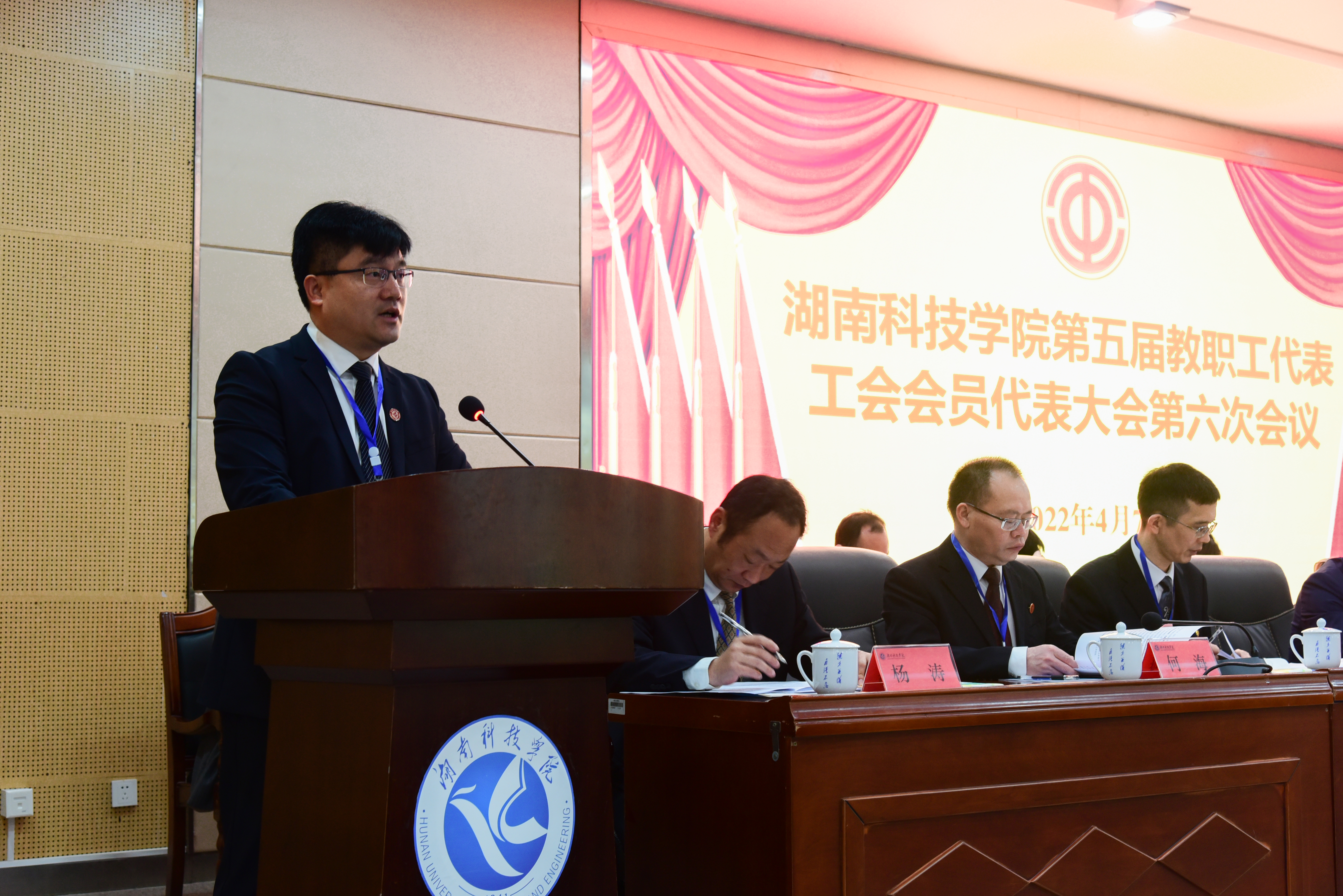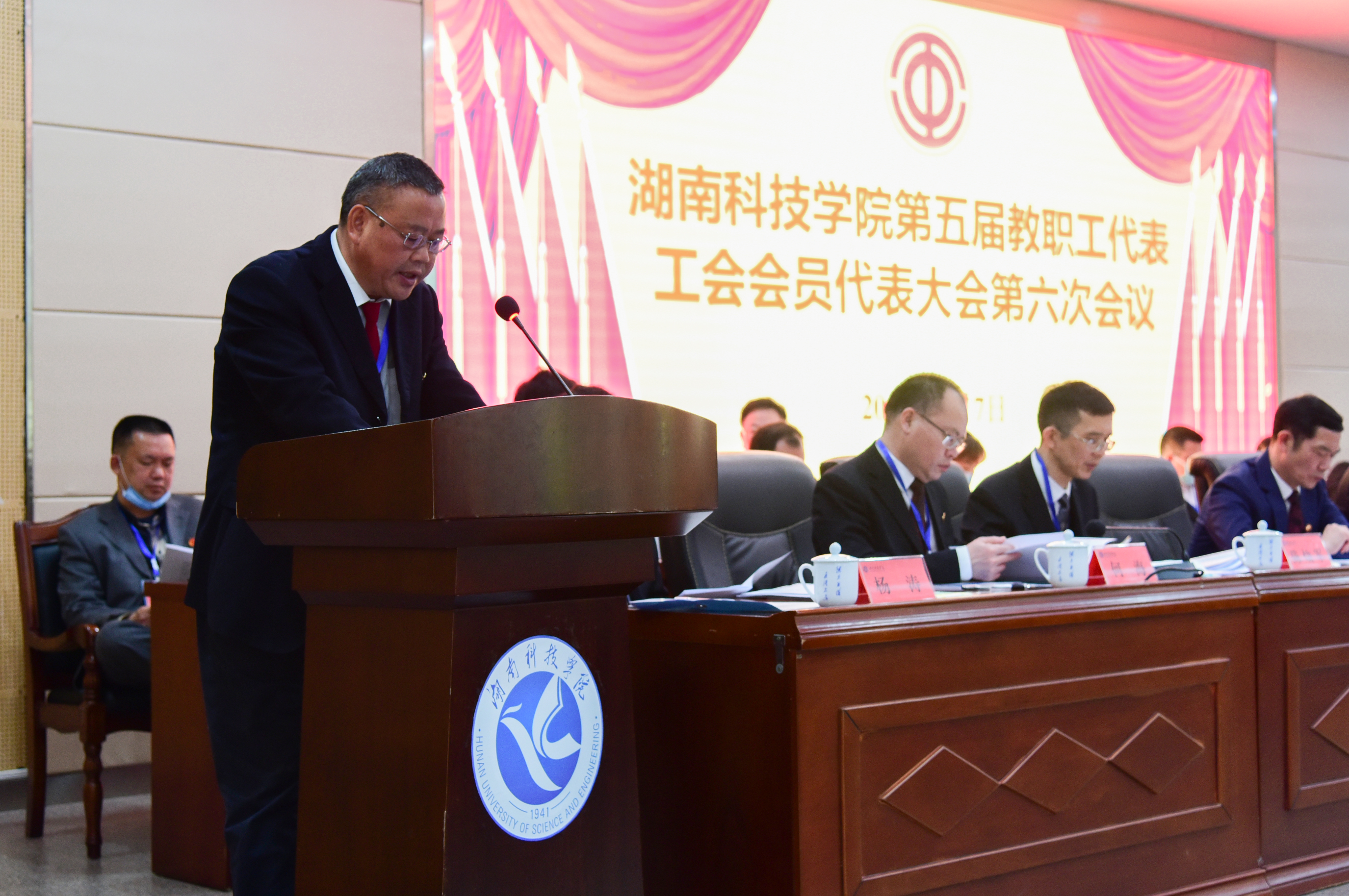 4月7日下午,为期一天的第五届教职工代表工会会员代表大会第六次会议圆满完成各项议程,在潇湘大讲堂闭幕。闭幕式由吴小林主持,曾宝成发表讲话。
