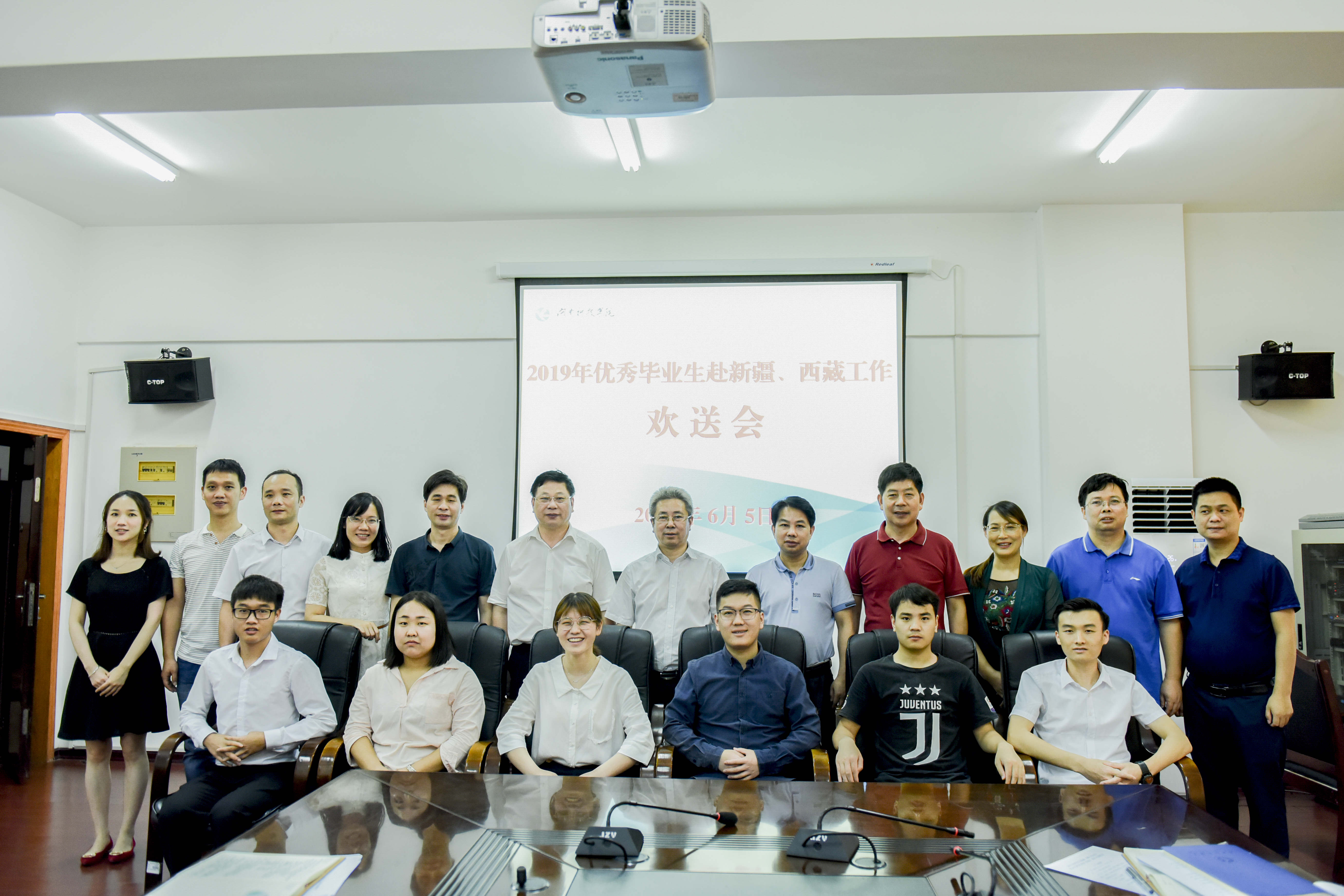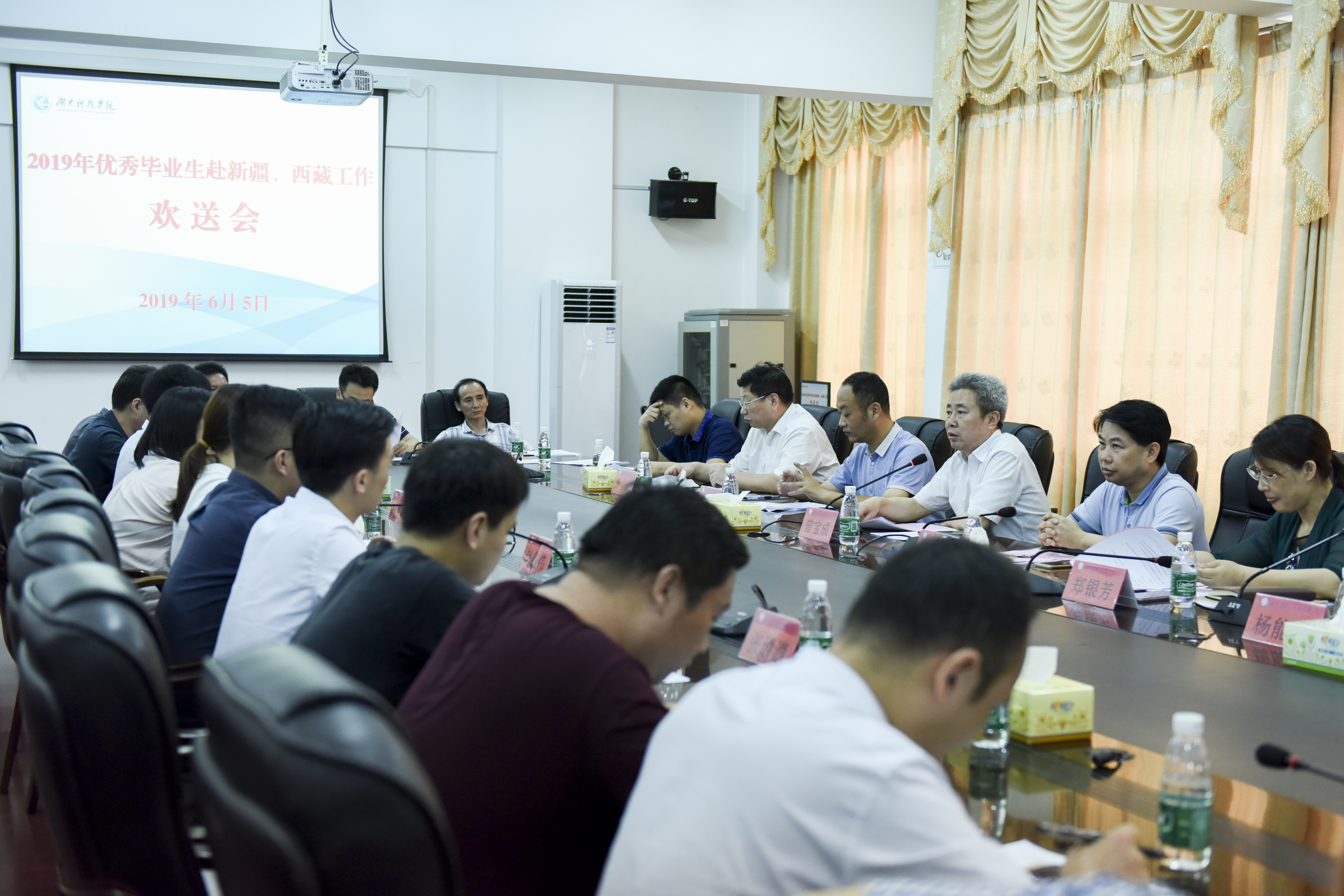 本网讯 6月5日下午,学校举行2019届优秀毕业生赴新疆、西藏工作欢送会。党委书记、校长曾宝成,副校长李常健,党委委员、宣传统战部长杨涛,就业创业指导中心、学工部、保卫处、校友办等职能部门负责人,各教学学院党总支书记、毕业班辅导员及今年刚被录用的8名毕业生参加。会议由李常健主持。