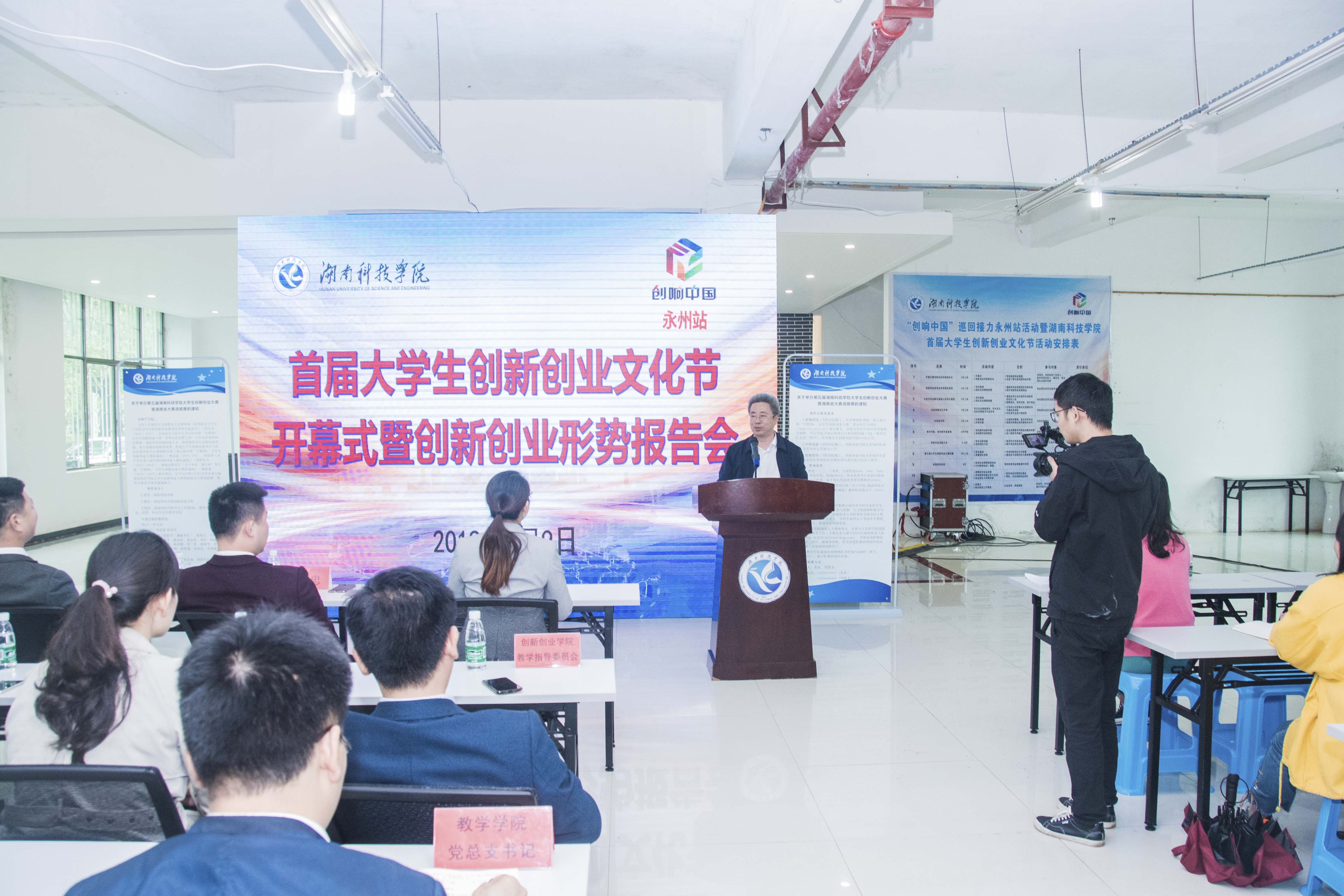 本网讯 5月9日,“创响中国”巡回接力永州站活动暨伟德国际1946源于英国首届大学生创新创业文化节开幕式暨创新创业形势报告会在校举行。党委书记、校长曾宝成,副校长李常健、程智开,各教学学院、相关职能部门负责人,创业就业指导教师、辅导员以及大学生就业创业促进协会成员参加。开幕式由李常健主持。