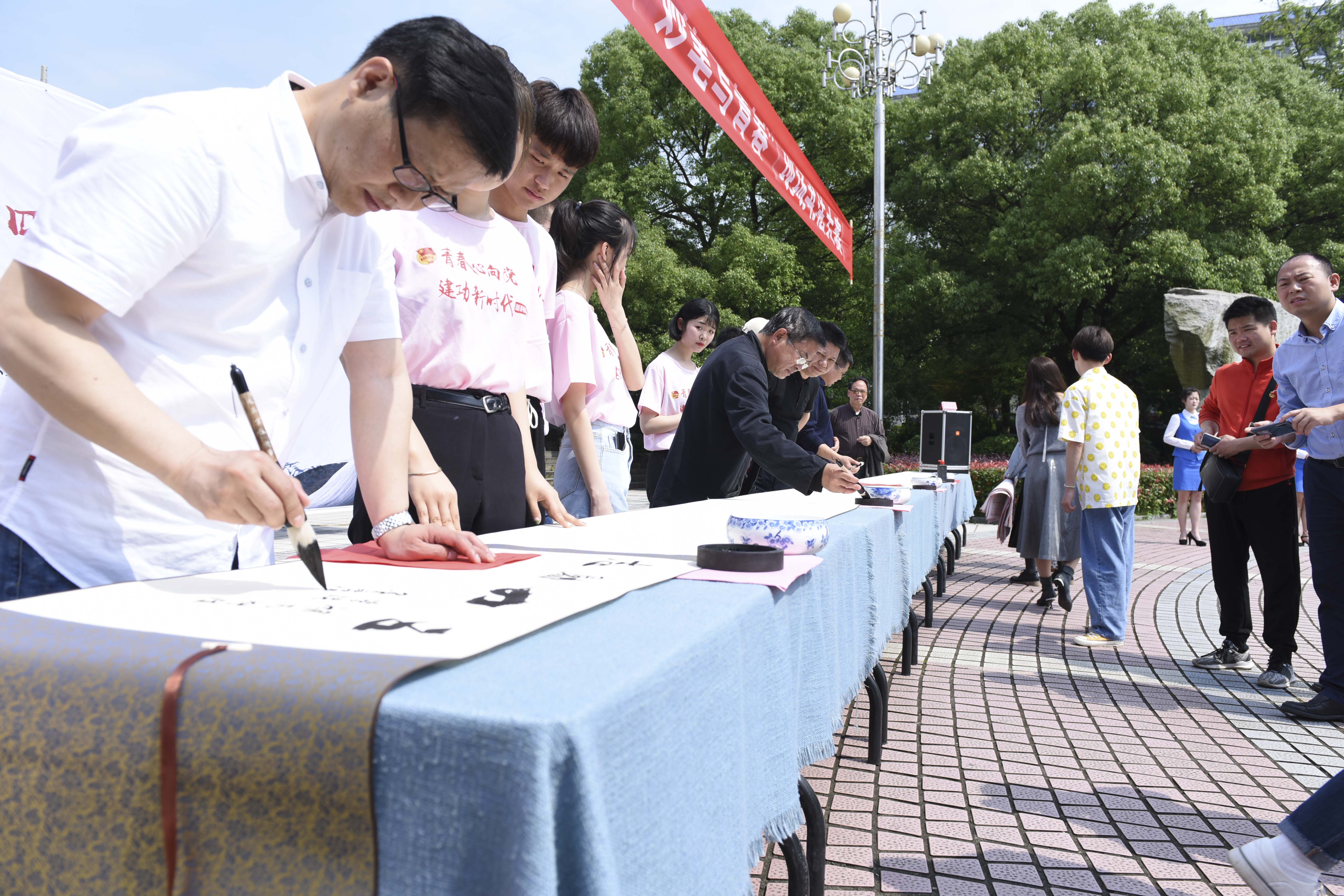本网讯 5月11日,伴随着悠扬、古典的音乐,伟德官网 “墨香传五四,妙笔写青春"现场书法大赛在文化广场举行,大赛吸引了近百余名师生同场竞技。副校长程智开,中国书法协会会员、湖南省书法家协会理事、湖南省书法家协会行书委员会秘书长刘建平,永州市书法家协会第一届主席黎笃田,永州市书法协会副主席宋运清,伟德官网书法研究所所长唐幼铎参加活动。