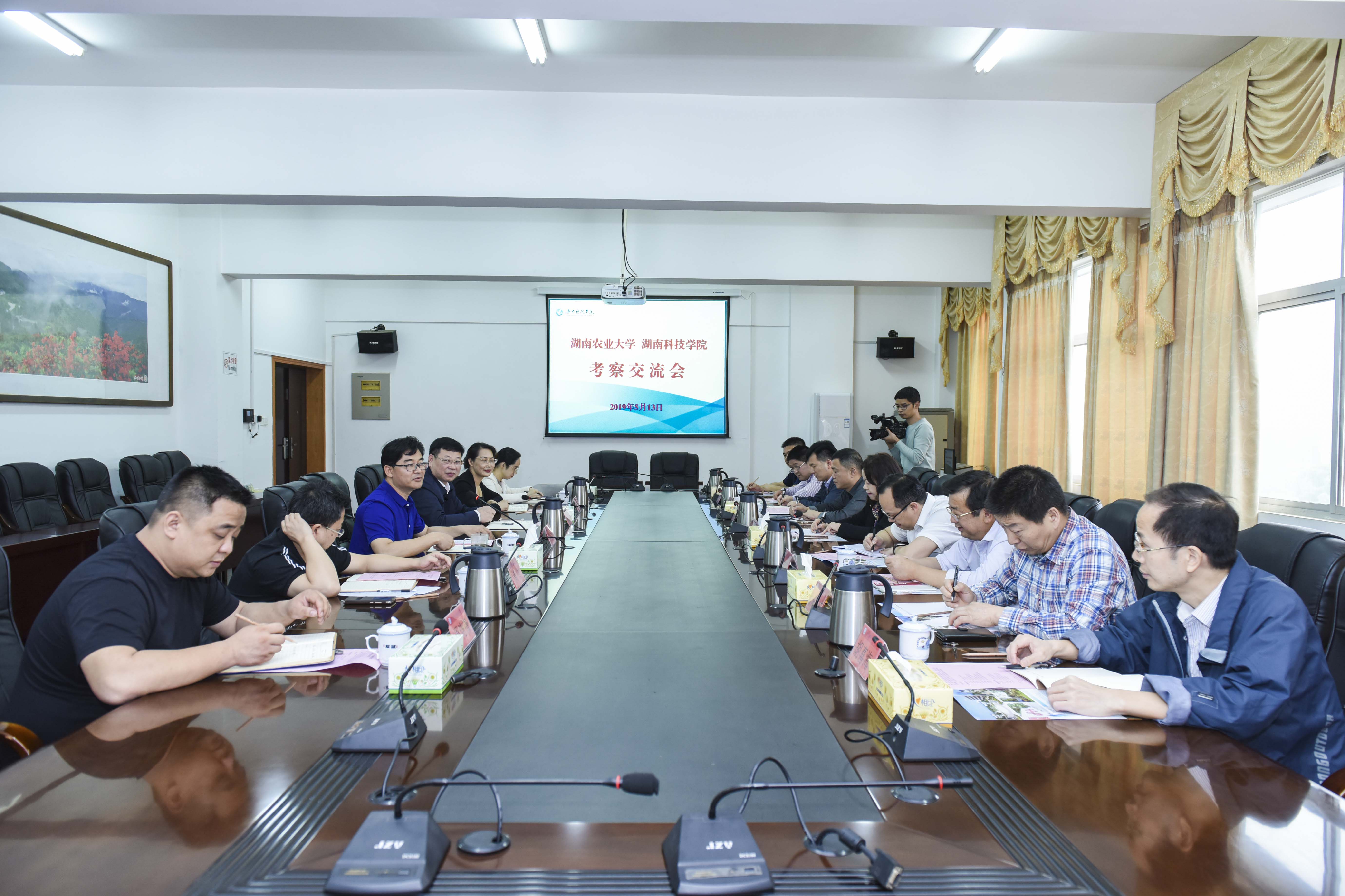 本网讯 5月13日下午,湖南农业大学党委委员、副校长张立一行9人来伟德官网进行考察交流,纪委书记彭立威,党政办、教务处、学工部、保卫处、就业创业指导中心等相关职能部门负责人参加交流座谈。