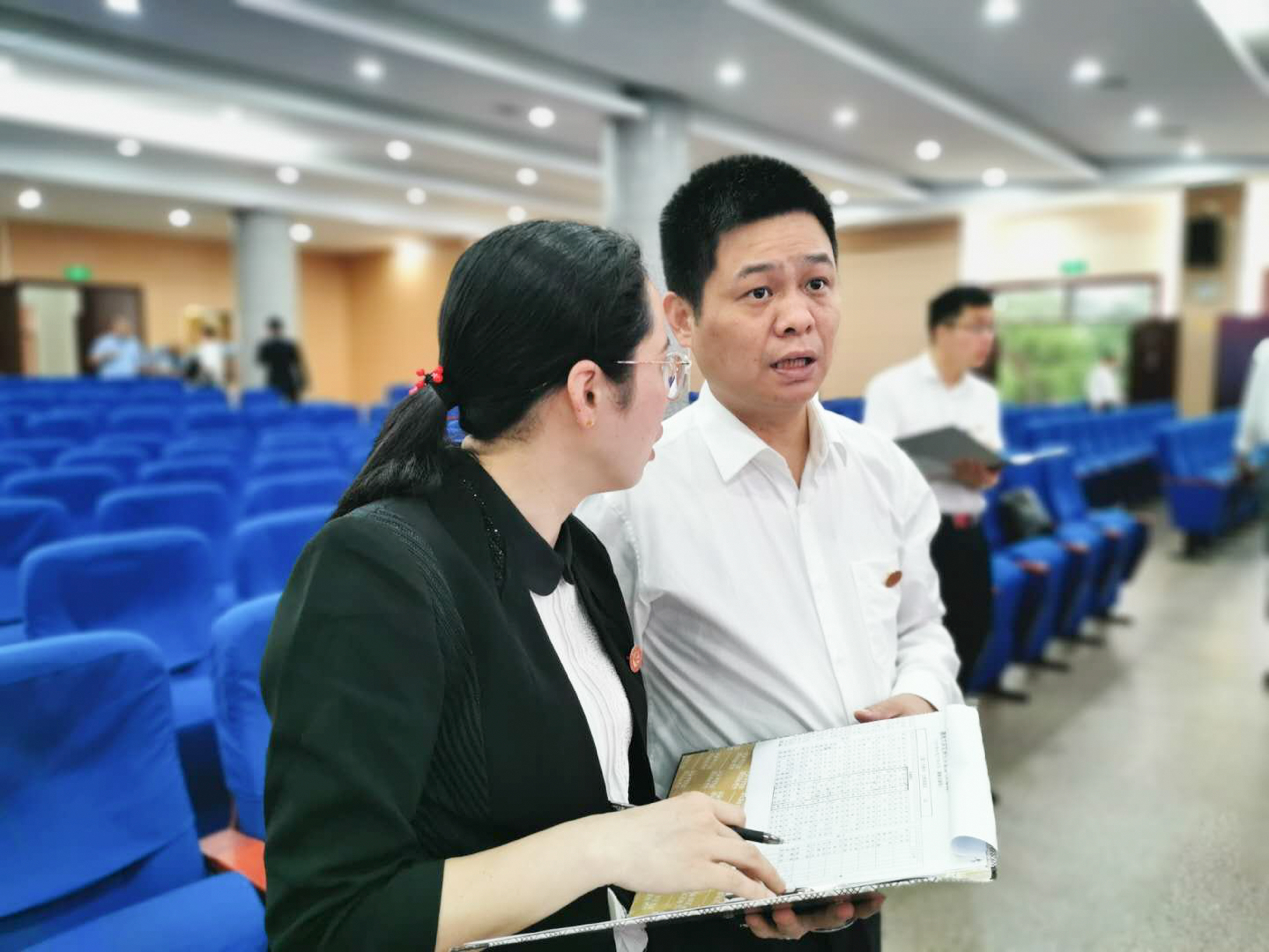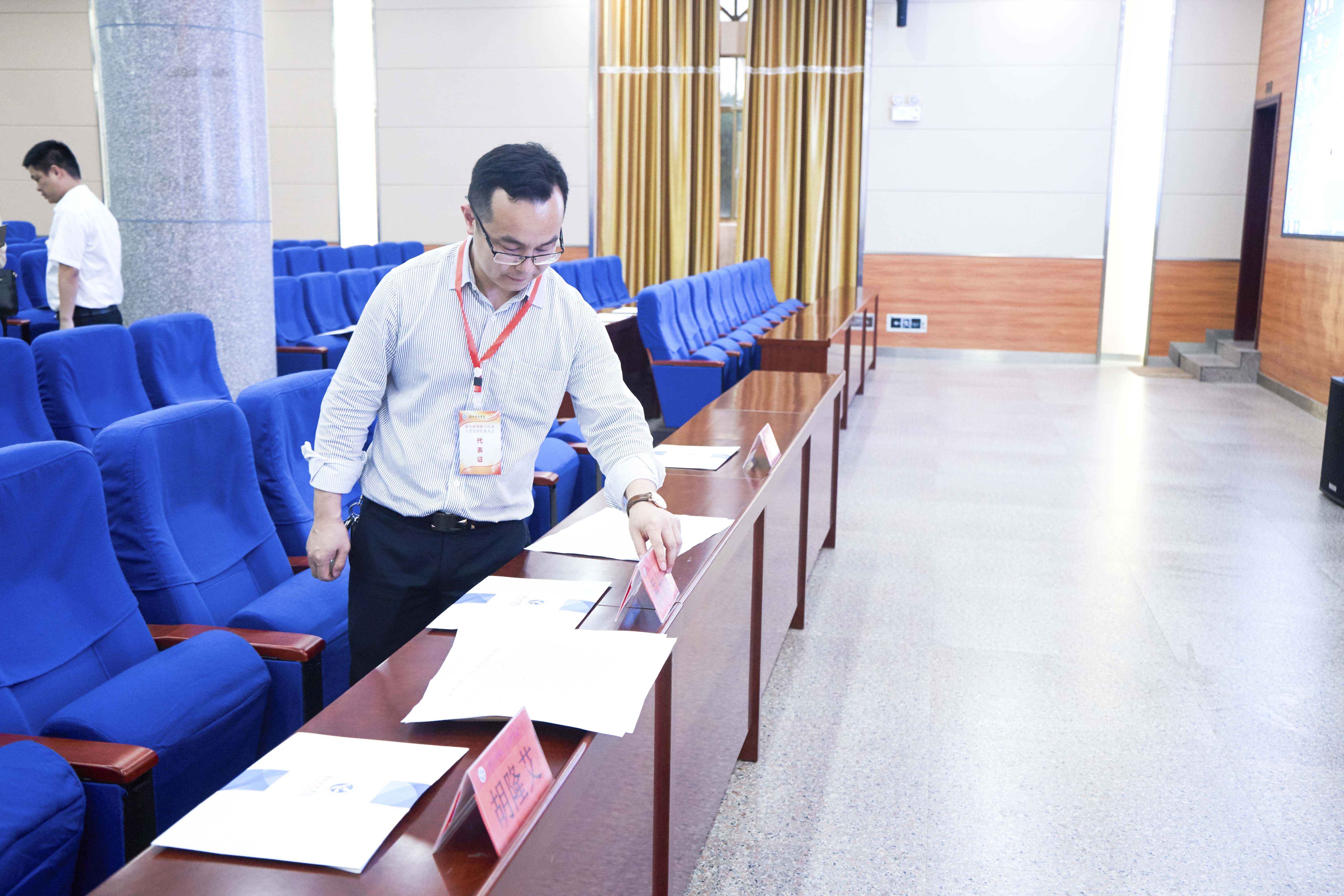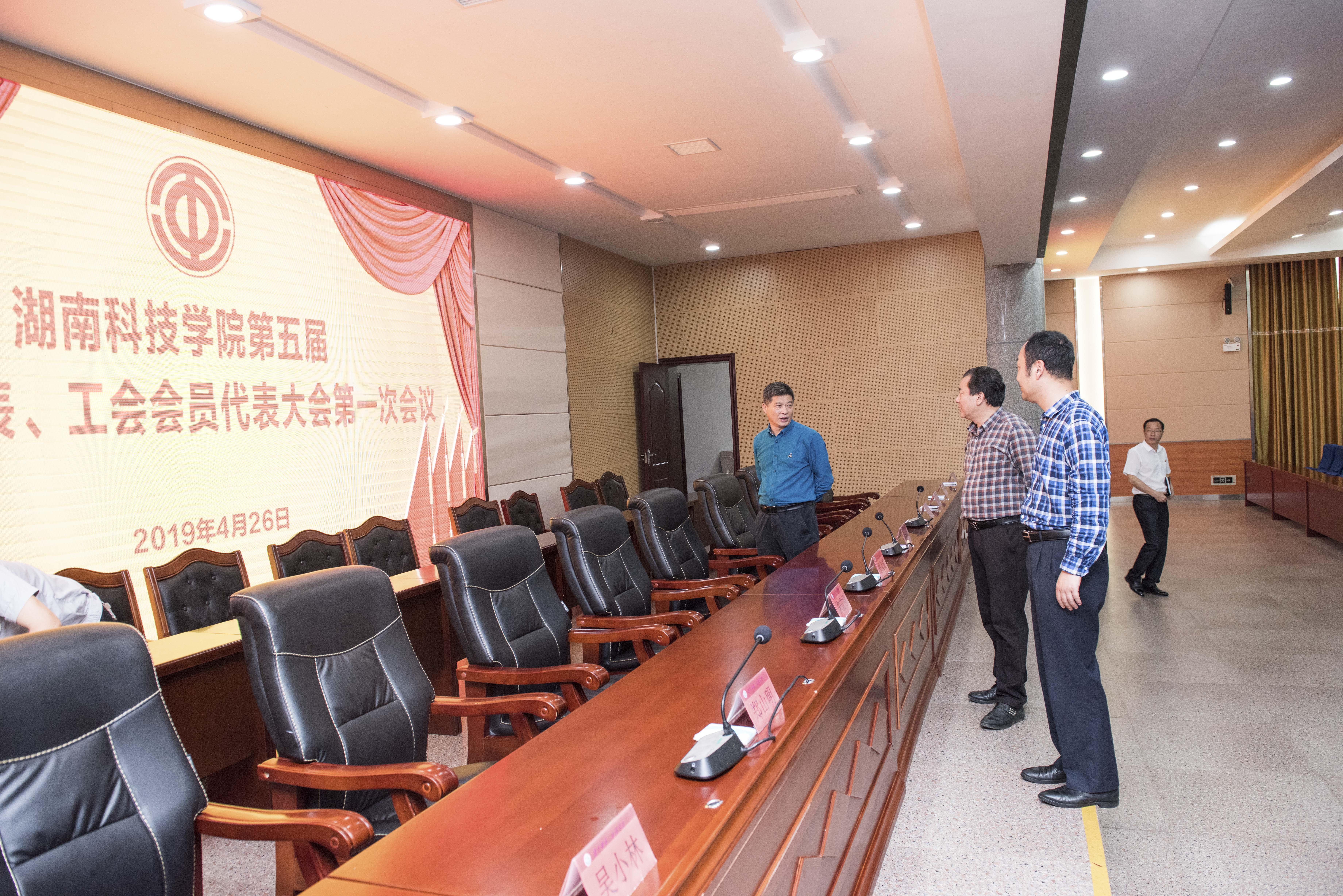 4月24日,校党委副书记唐艳明查看会场准备情况。