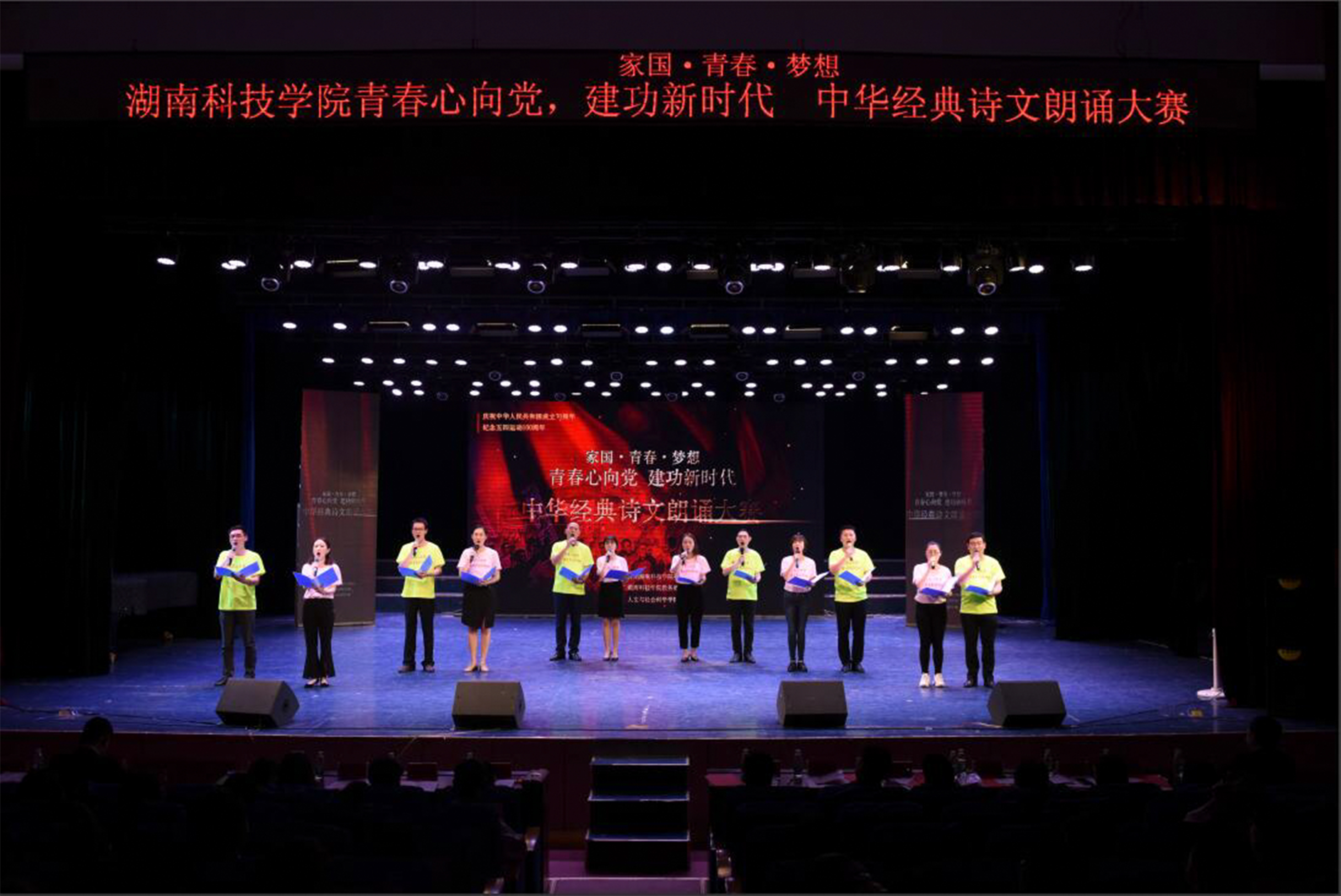随后,大会进入“青春心向党,建功新时代”经典诗文朗诵比赛环节,八个朗诵团队感情真挚,热情讴歌伟大的五四运动和五四精神。