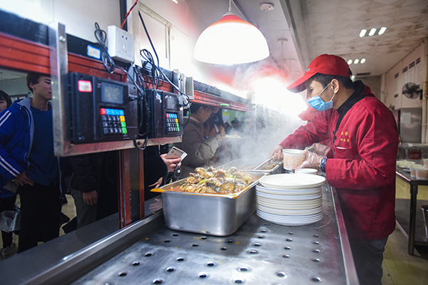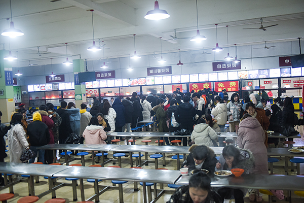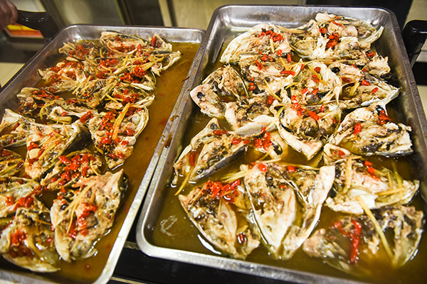 本网讯    1月11日晚,学校上千学生在桃园食堂和松园食堂窗口前排起了长队,等待品尝鲜味十足的科院鱼宴。为了准备“鲜鱼大餐”,学校在校内的人工湖内捕鱼1000余斤,供学生免费品尝。