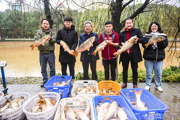 此次捕捞的鱼是年初学校投放在人工湖里的,主要品种有草鱼、鲢鱼、鲤鱼等,投放时鱼苗大多1斤左右,如今最大的已经重达6-8斤,捕捞上岸的鲜鱼总计1000斤左右。谈到次捕鱼,据后勤服务总公司李总介绍,把湖里大鱼捕捞出来供学生们免费食用,体现学校以“学生为中心的”办学理念,也是以“学生为本”的具体体现,同时可以为学生们改善伙食,尤其是为正在期末考试的同学们增加营养,喝口热气腾腾的鱼汤可以驱散严冬的寒冷。