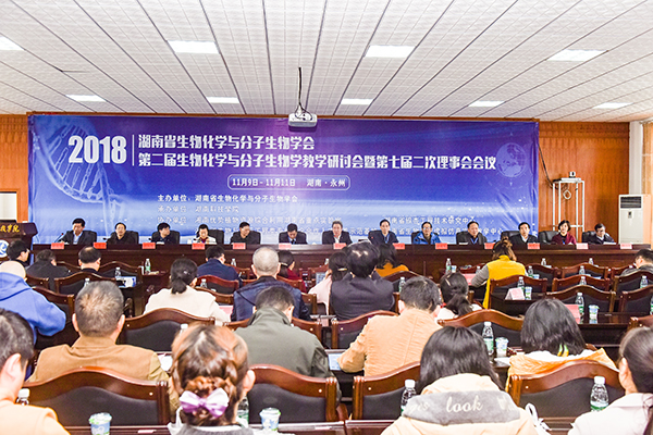 本网讯 11月10日上午,湖南省生物化学与分子生物学会第二届生物化学与分子生物学教学研讨会暨第七届二次理事会在学校召开。本次会议以“以本为本,推动生化与分子生物学课堂革命”为主题,由湖南省生物化学与分子生物学会主办,伟德官网承办,学会理事长胡维新、名誉理事长梁宋平及来自全省的60余名专家学者参会。校长曾宝成参加开幕式并致辞。