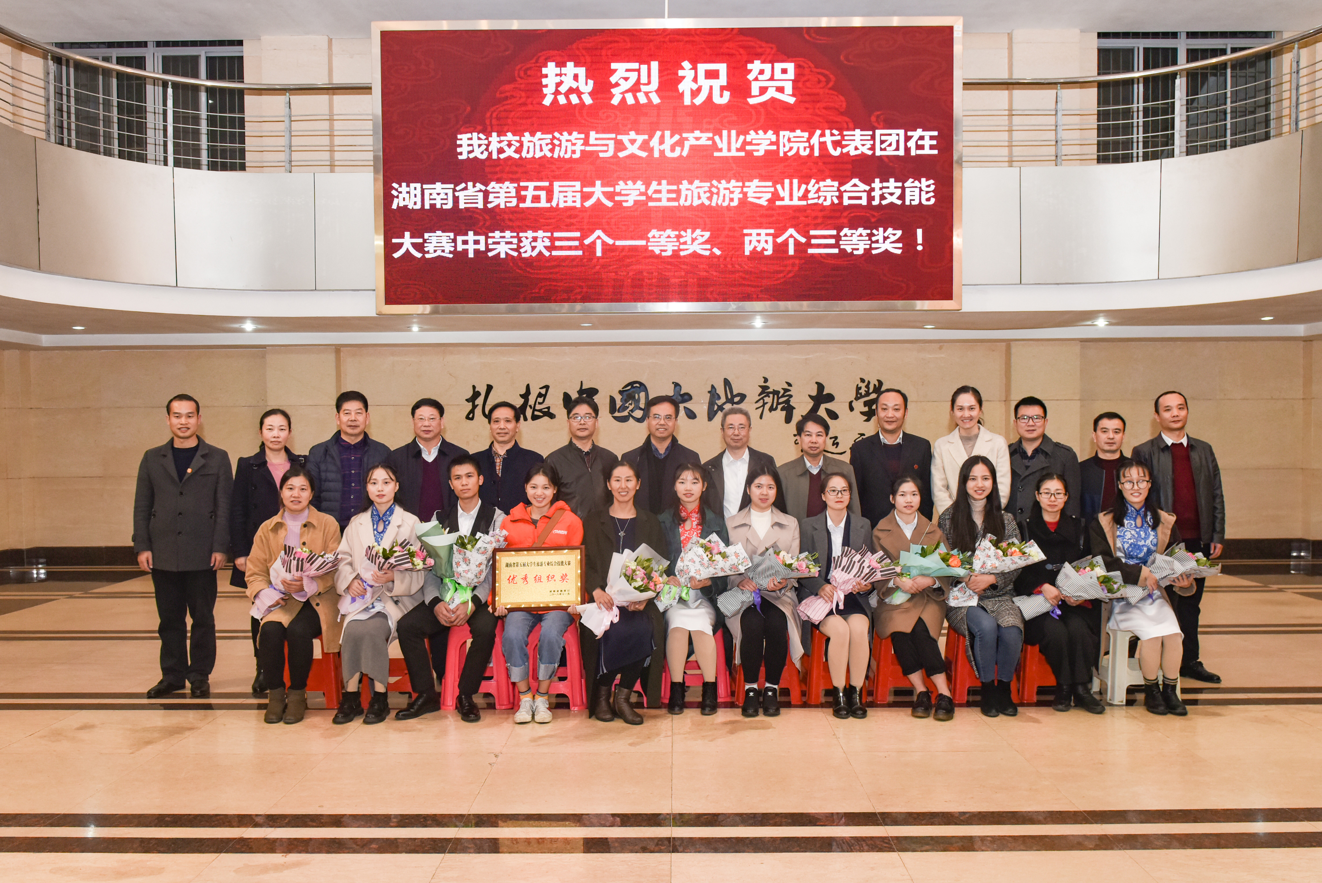本网讯 11月14日晚,学校举行仪式欢迎在全省第五届大学生旅游专业综合技能大赛中取得优异成绩的师生载誉归来。校党委书记陈弘,校长曾宝成,纪委书记、旅游与文化产业学院联系校领导彭立威,副校长李常健,党委委员、宣传统战部长杨涛,相关职能部门负责人以及旅游与文化产业学院师生代表参加,仪式由彭立威主持。