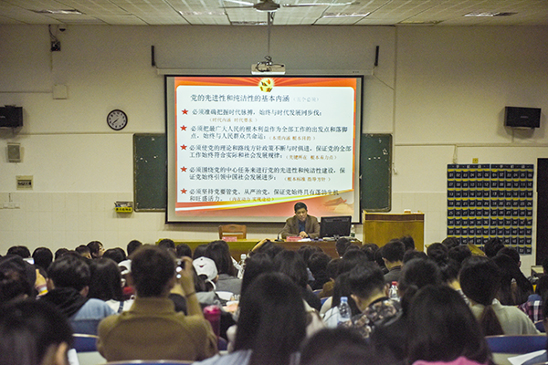 本网讯  11月1日晚,学校党委副书记、工会主席唐艳明为第三十五期党员发展对象培训班学员授课,主讲“坚持党的先进性和纯洁性,争做合格共产党员”专题。