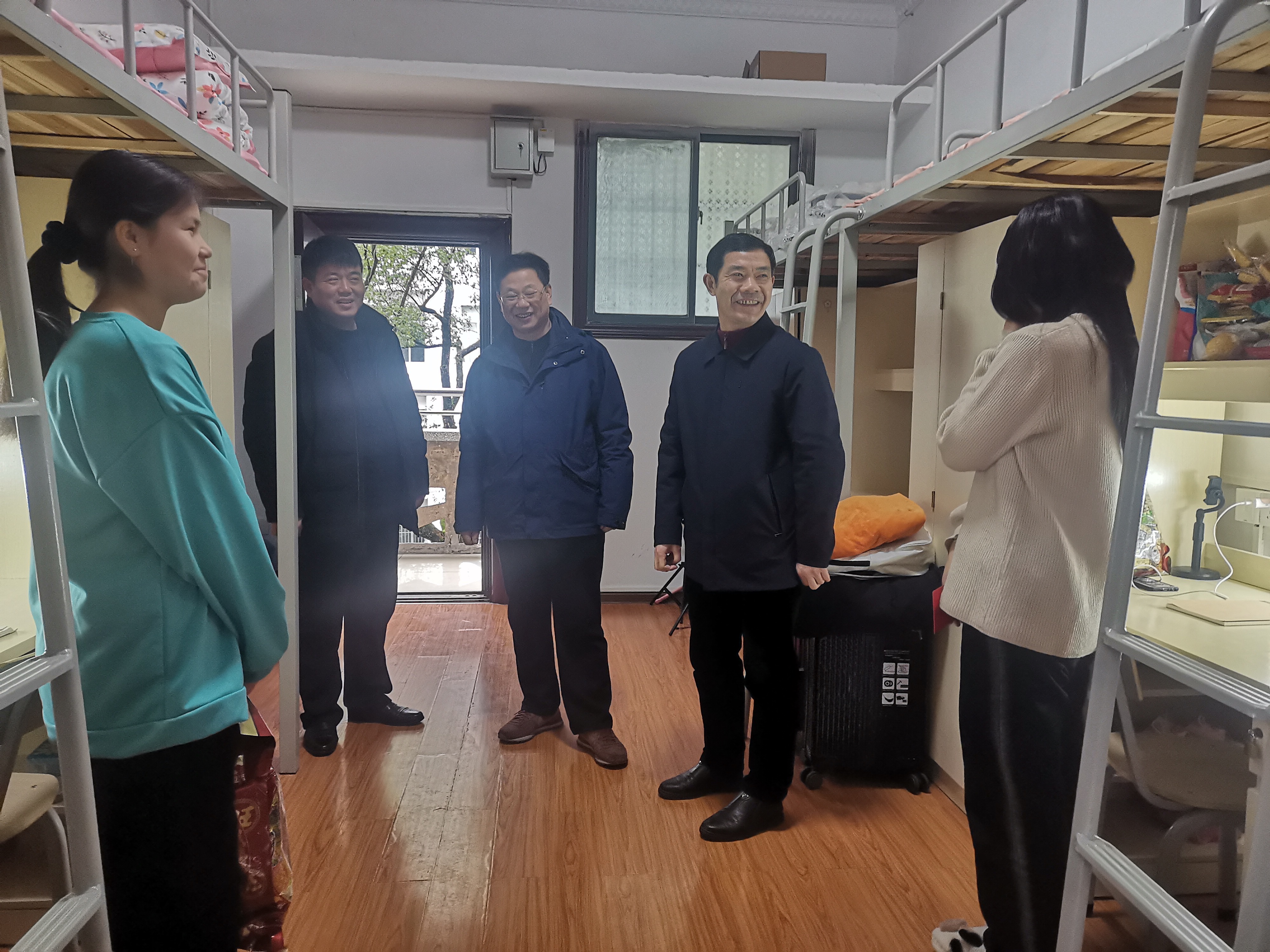 本网讯 1月29日,党委委员、副校长吴小林来到留校学生宿舍看望慰问留校学生,为她们送去了慰问品、慰问金以及新春的的祝福,学工部部长唐华山等陪同走访。