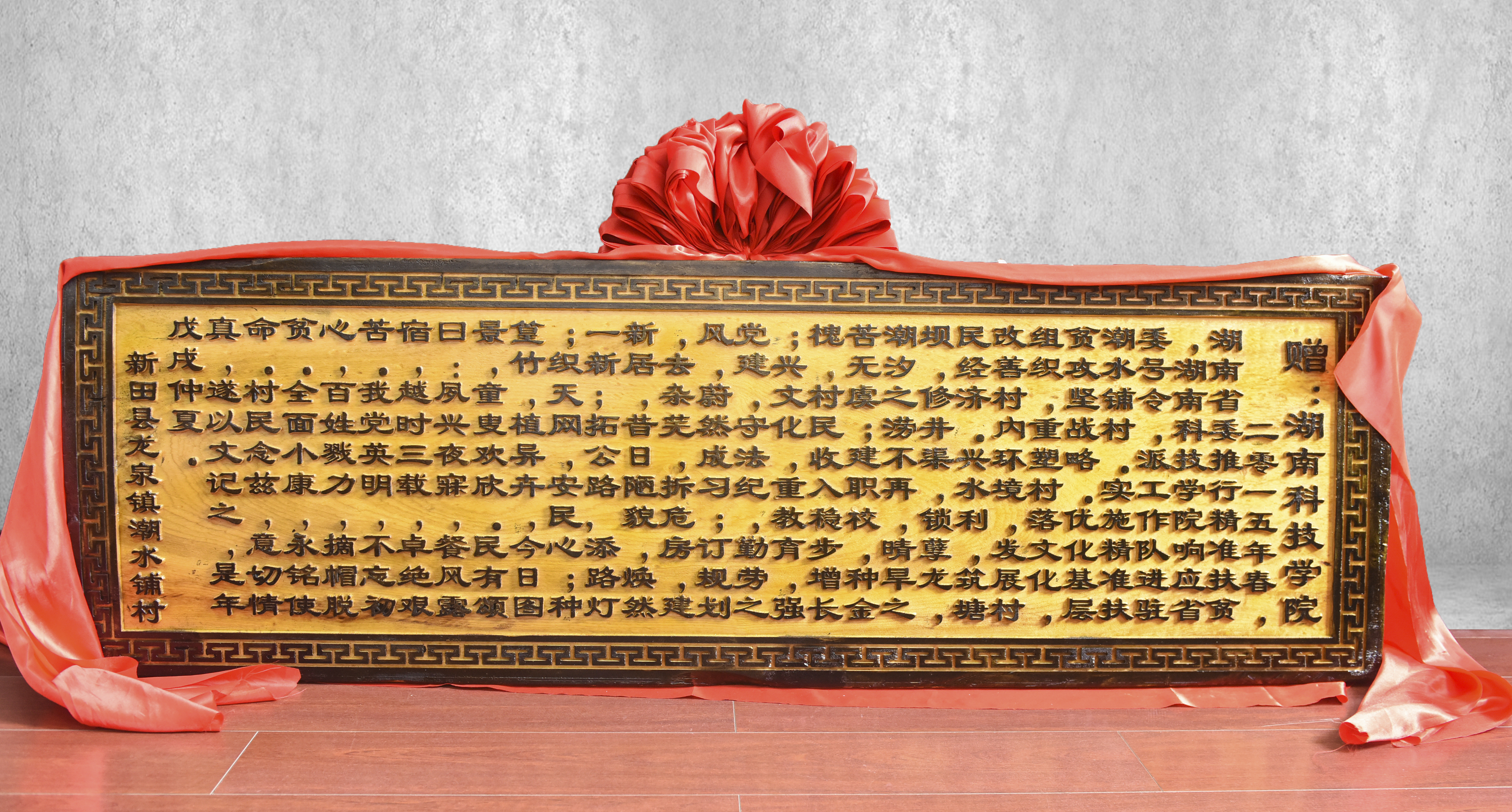 本网讯 9月6日上午,新田县潮水铺村两委班子来校赠送感谢牌匾,并座谈交流对口扶贫工作。党委副书记唐艳明主持座谈会,原驻村扶贫工作队队长贺幸福等有关部门负责人参加。