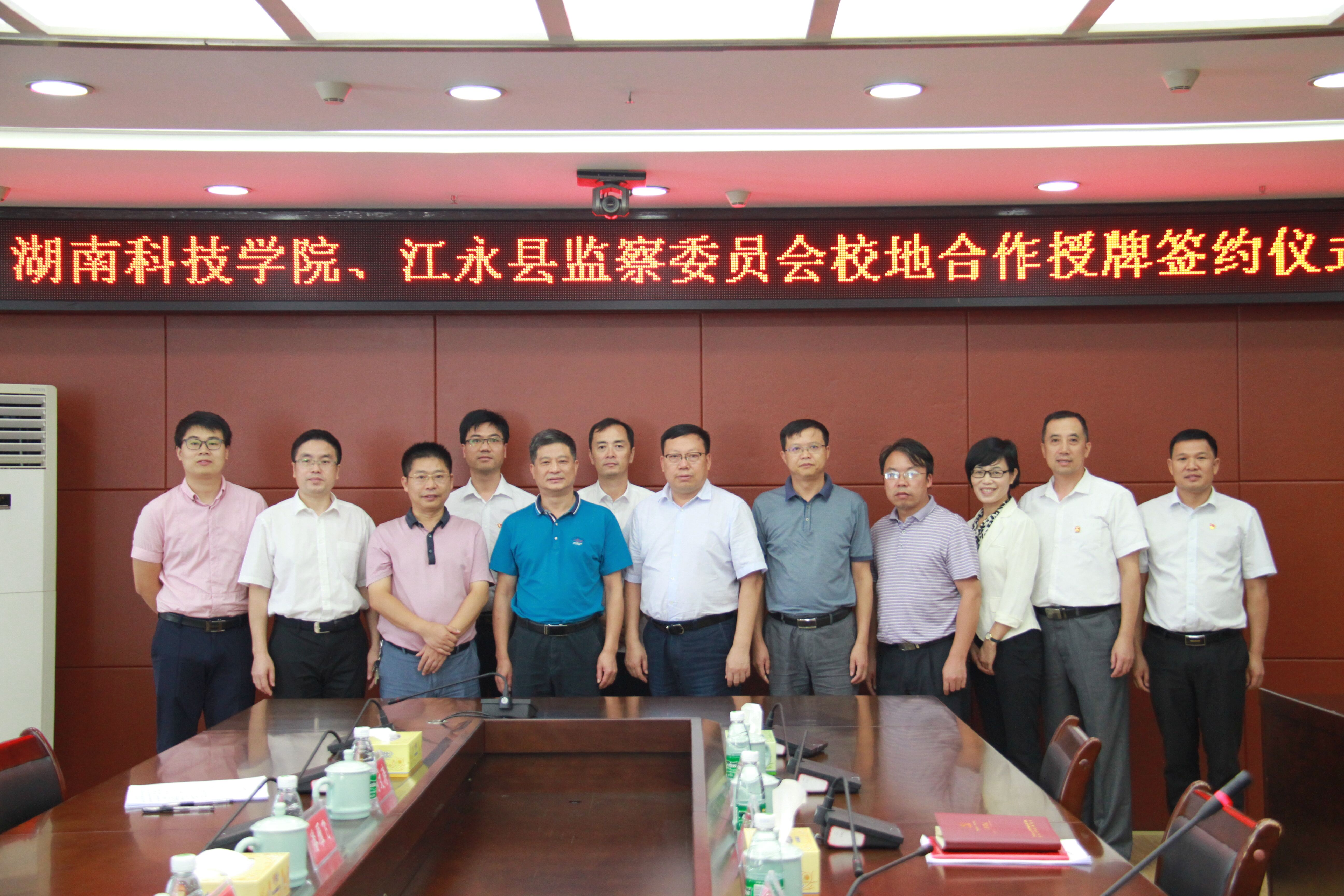 本网讯(通讯员 肖文涛) 9月12日,伟德官网与江永县监察委员会校地合作授牌签约仪式在江永县举行。校党委副书记唐艳明、人文与社会科学学院院长潘雁飞、党总支书记谷显明,江永县委书记周立夫,县委副书记、县长唐德荣,县委常委、县纪委书记、县监委主任唐阳陵出席授牌签约仪式,学校相关人员和江永县纪委监委班子成员参加授牌签约仪式。