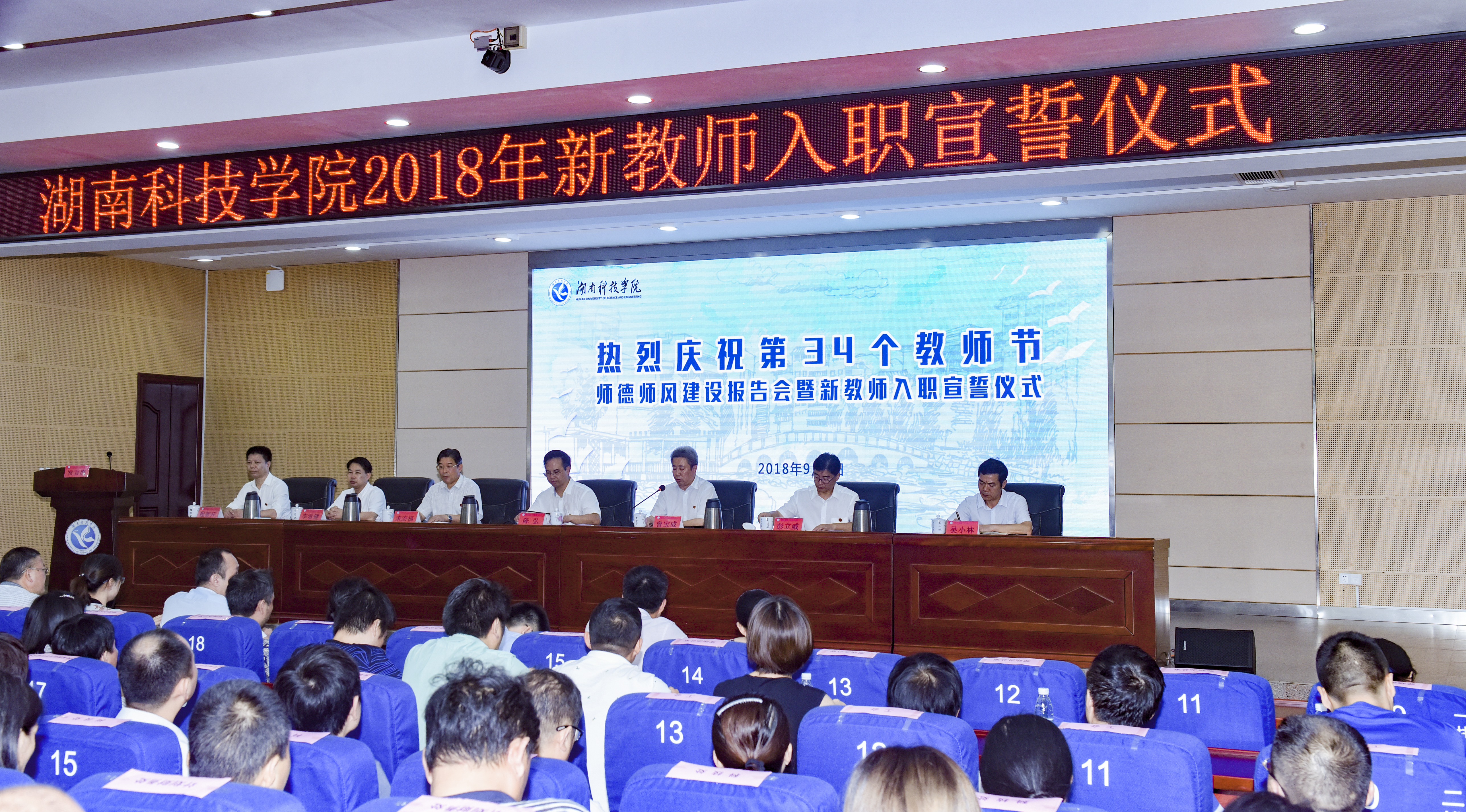 本网讯  9月6日下午,学校在潇湘大讲堂召开师德师风建设报告会暨新教师入职宣誓仪式,庆祝第34个教师节。校领导陈弘、曾宝成、宋宏福、彭立威、李常健、吴小林、程智开和千余名教师出席。党委副书记、校长曾宝成主持大会。