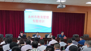 本网讯 7月18日,永州市教育管理专题培训班开班典礼在伟德官网行政楼八楼一会议室举行,伟德官网副校长李常健,永州市教育局副局长李谋韬、永州市教师发展中心负责人唐作明,以及来自全市各中小学的135名校长参加,伟德官网教师发展中心主任杨再喜主持开班典礼。
