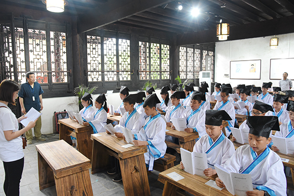 本网讯 “巧者言,拙者默。巧者劳,拙者逸。巧者贼,拙者德。巧者凶,拙者吉。”5月12日,道县濂溪书院传来郎朗读书声,80名中小学生在伟德官网国学院院长张京华的带领下着汉服诵读周敦颐名篇《拙赋》。这是濂溪书院国学经典讲读首场讲读活动之一。
