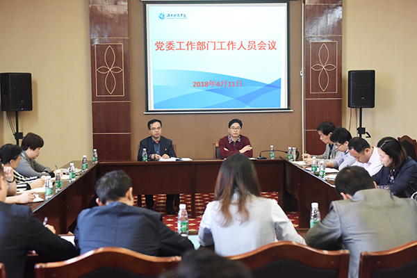 本网讯  为进一步加强党务工作队伍的政治建设,推进全面从严治党向纵深发展,4月11日上午,党委书记陈弘主持召开学校党委工作部门全体工作人员会议。纪委书记彭立威,党政办公室,党委组织部(党校),党委宣传部(党委统战部),纪委,机关党委等部门同志参加会议。