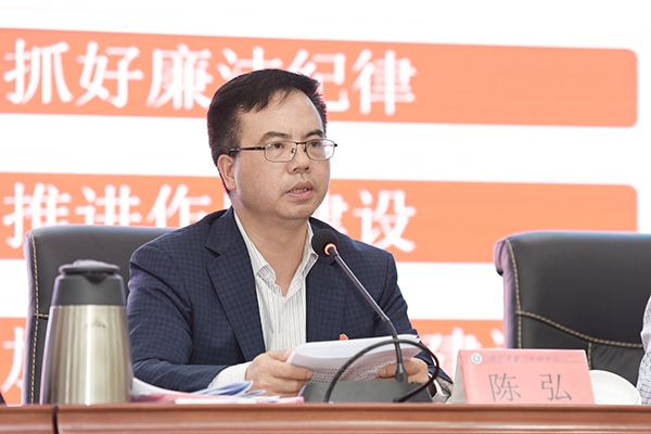 党委书记陈弘讲话强调,要坚持以习近平新时代中国特色社会主义思想为指导,以政治建设为统领,坚定不移推进全面从严治党向纵深发展、向基层延伸,进一步营造良好的党风、校风、师风、学风,推动学校内涵式发展。