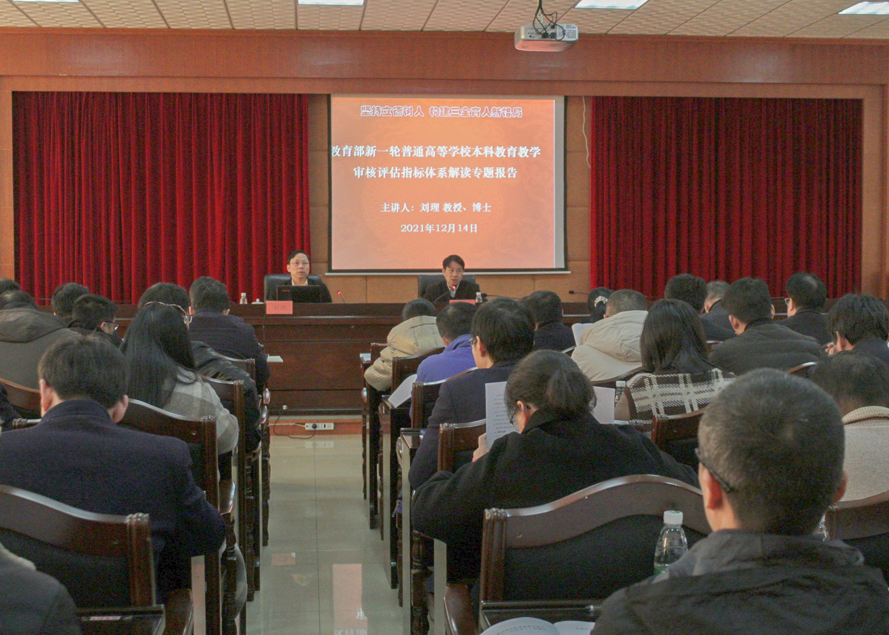 本网讯(记者 江美旗)12月14日下午,伟德官网开展新一轮普通高等学校本科教育教学审核评估指标体系解读专题报告。本次报告会主讲嘉宾为教育部本科教育教学审核评估专家、湖南理工学院教育科学学院院长刘理教授,党委委员、副校长李常健出席并主持培训会。