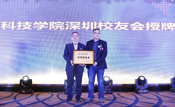 曾宝成为深圳校友会及新任会长段小燕授牌,校领导分别为新一届校友会理事会成员授牌。
