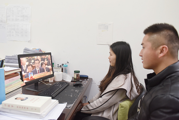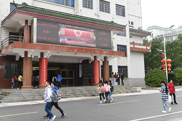 伟德官网广大师生热切关注“两会”召开,学校师生通过手机、电视、网络、电子显示屏等渠道收听收看“两会”盛况,多渠道、多方式热切关注“两会”动态。今天上午9点, 学校师生分别以不同方式认真听取李克强总理所作的政府工作报告。学校电子电视屏、校园广播站分别对会议盛况进行了转播,让更多师生及时了解大会盛况。