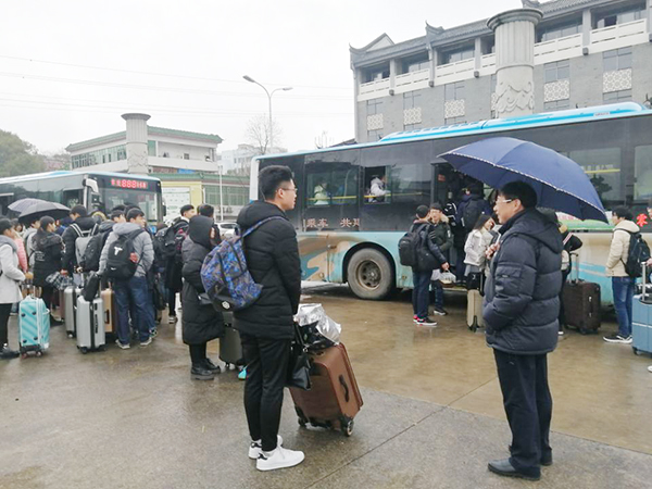 “我是海南人,以往每年赶火车都必须早上6点就起床,差不多快2个小时才能到达火车站,今天不急不慢,特别感谢学校对我们的关心。”来自经济与管理学院大三学生陈景恰同学原本打算和同学拼车去火车站,在班级群中看到学校“爱心巴士”继续发车的消息,果断决定坐直通车去火车站。不少坐了早班车去火车站的学生都发了朋友圈为学校这一举措连连点赞,传媒学院大一新生胡惠婷同学说,“最近是大家的返程高峰,且又将迎来持续雨雪天气,学校的爱心巴士方便快捷,舒适又安全,虽然天冷但让我们心暖。”