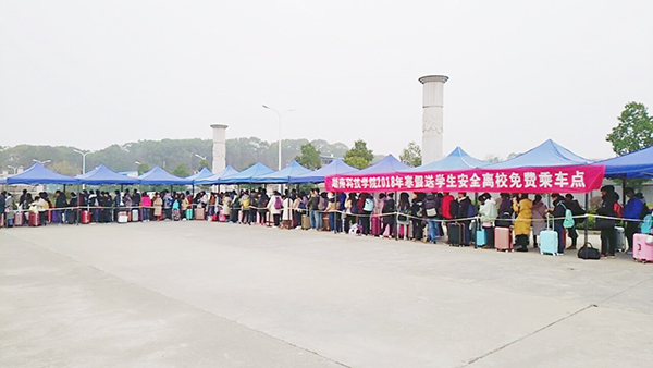据学工部负责人介绍,自2015年来,学校特意安排了“爱心巴士”免费送学生直达冷水滩火车站、汽车站,累计已超过40000人次学生搭载,既避免了学生因堵车不能赶上火车,也消除了学生搭乘非法运营私家车的安全隐患。