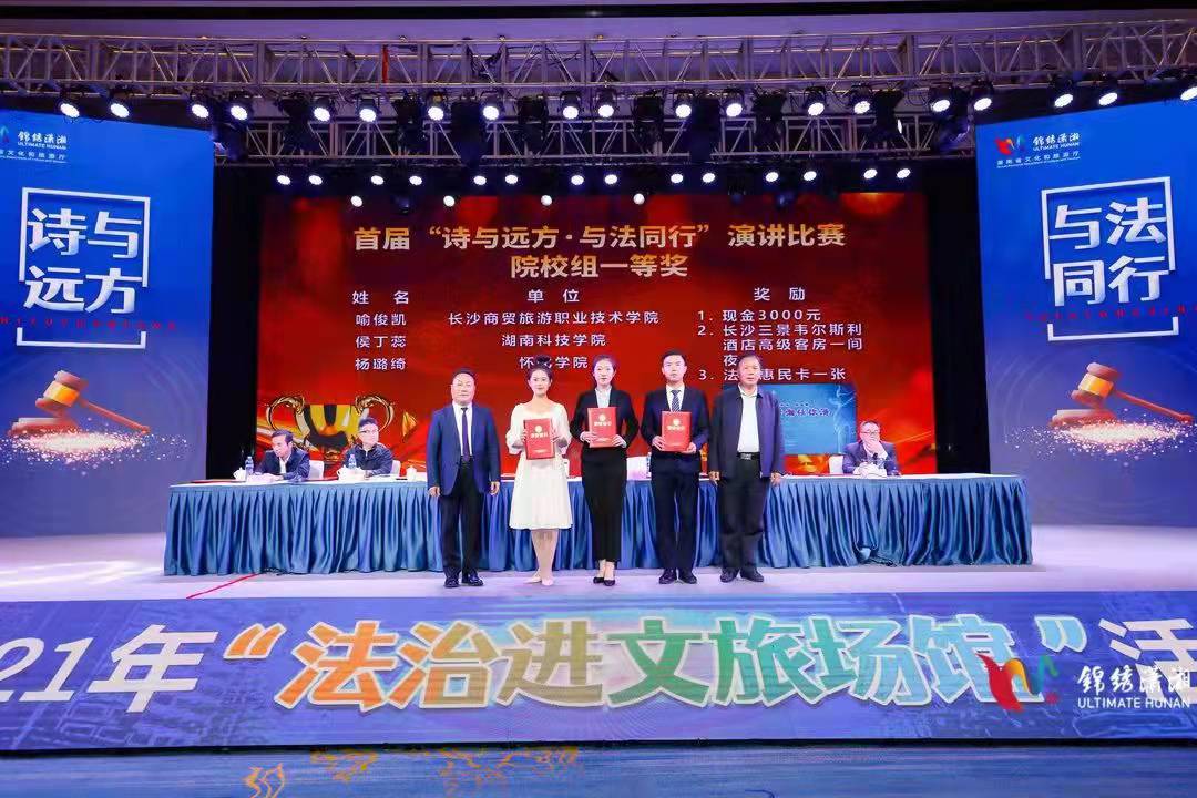 本网讯 12月17日,由湖南省文化和旅游厅、湖南省司法厅主办的首届“诗与远方·与法同行”主题演讲比赛在株洲举行。比赛通过立足文旅视角,感悟法治力量的演讲舞台,引领文旅行业从业者以及广大青年学子学法、懂法、用法。