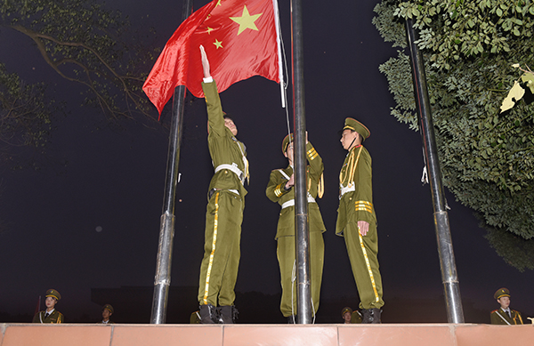 “升国旗,奏唱国歌,向国旗敬礼!”随着一声令下,雄壮的《义勇军进行曲》随即响起,鲜艳的五星红旗冉冉升起。现场全体师生纷纷向庄严的五星红旗行注目礼,并高唱国歌,唱出全体师生对党和国家的无比热爱、无比崇敬之情。“东方太阳,正在升起,人民共和国正在成长……”迎着朝阳旭日,全体师生齐唱《歌唱祖国》,用歌声表达对祖国的真诚祝福,对新时代的美好憧憬,迸发出科院人戮力同心的强大正能量。大合唱在全体师生用青春之声奏唱校歌《潇湘之歌》中结束,唱出了每一个科院人的蓬勃与活力,充分展现出科院人昂扬向上的精神风貌。