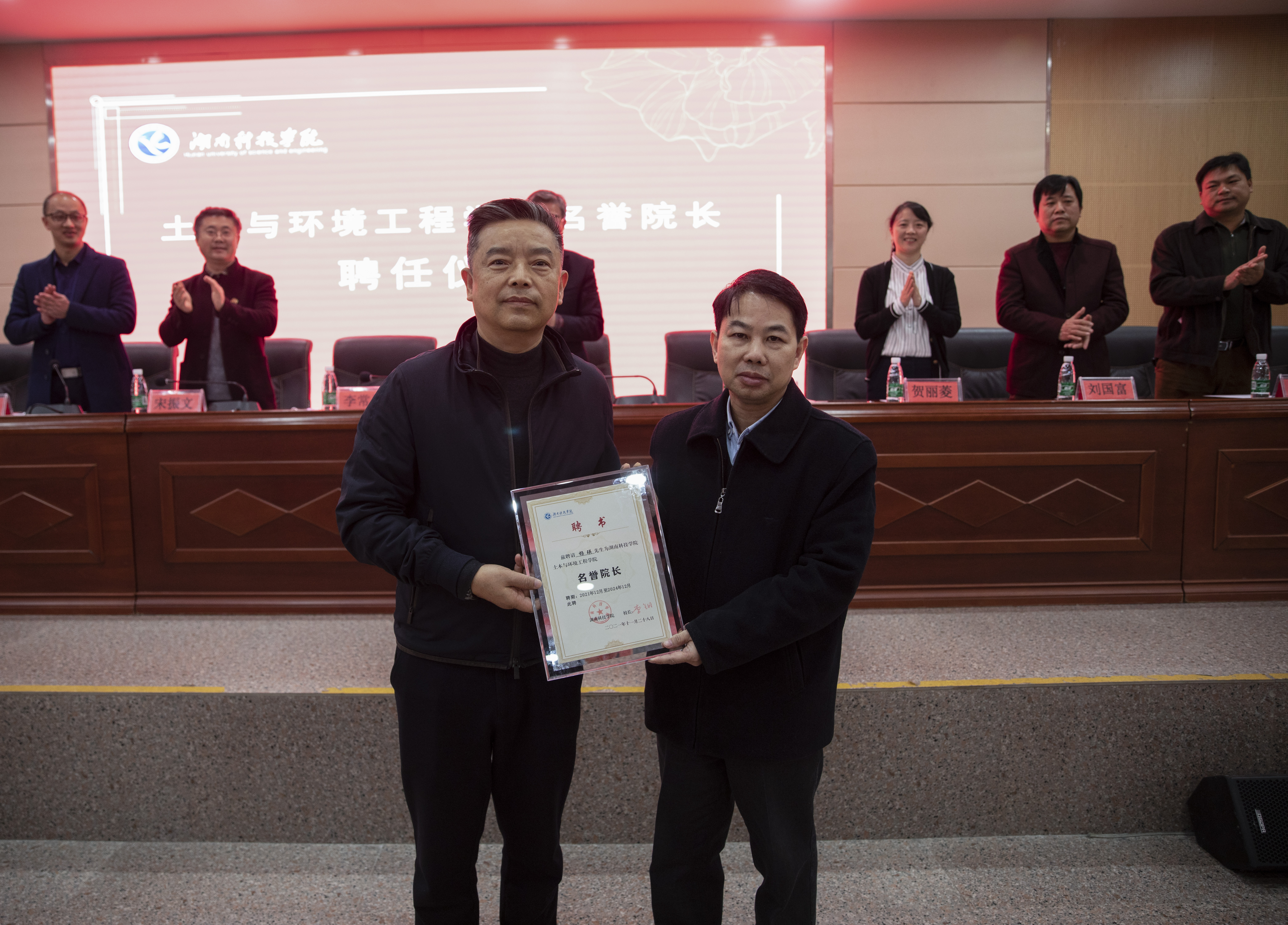 中建湖湘设计院、永州市建筑设计院、自然资源规划局及学校人事处、教务处、科研处、基建处等相关专家领导,以及全校相关专业学生代表参加参加聘任仪式。