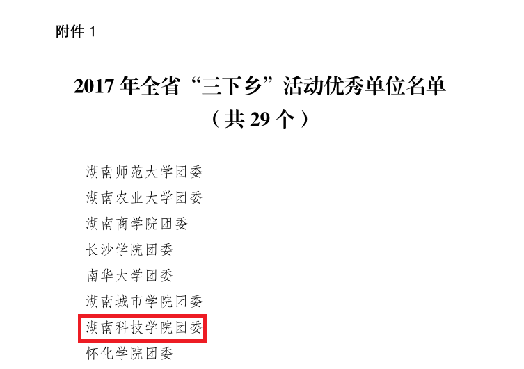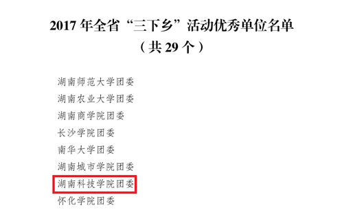 本网讯 近日,省委宣传部、团省委、省教育厅、省文明办、省学联印发《关于2017年全省大中专学生志愿者暑期文化、科技、卫生“三下乡”社会实践活动优秀单位、优秀个人、优秀指导者和优秀服务团队的通报》(湘团联〔2017〕51号),伟德官网荣获2017年全省大中专学生志愿者暑期文化、科技、卫生“三下乡”社会实践活动“优秀单位”称号,土木与环境工程学院“保护古建筑,传承中华文化”实践团获评省“优秀服务团队”,张俭民等5名教师获评“优秀指导者”,郑尚明等8名学生获评“优秀个人”。