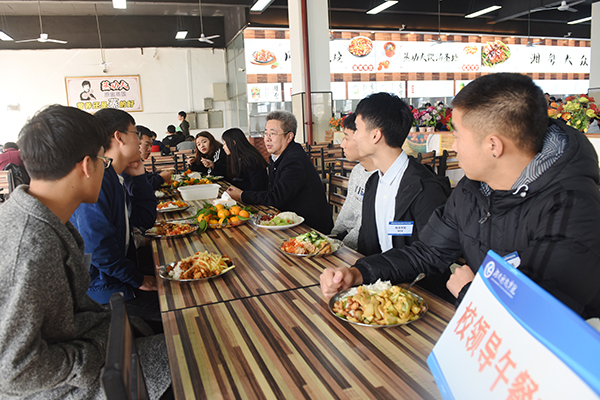 本网讯 “大家不要拘谨,一起吃个饭,聊聊天”。11月28日中午,校长曾宝成亲切的开场白使同学们放松下来,本学期第三次“校领导午餐交流会”在松园食堂二楼如期举行。曾宝成与10多名学生代表共进午餐,在轻松融洽的氛围畅所欲言。