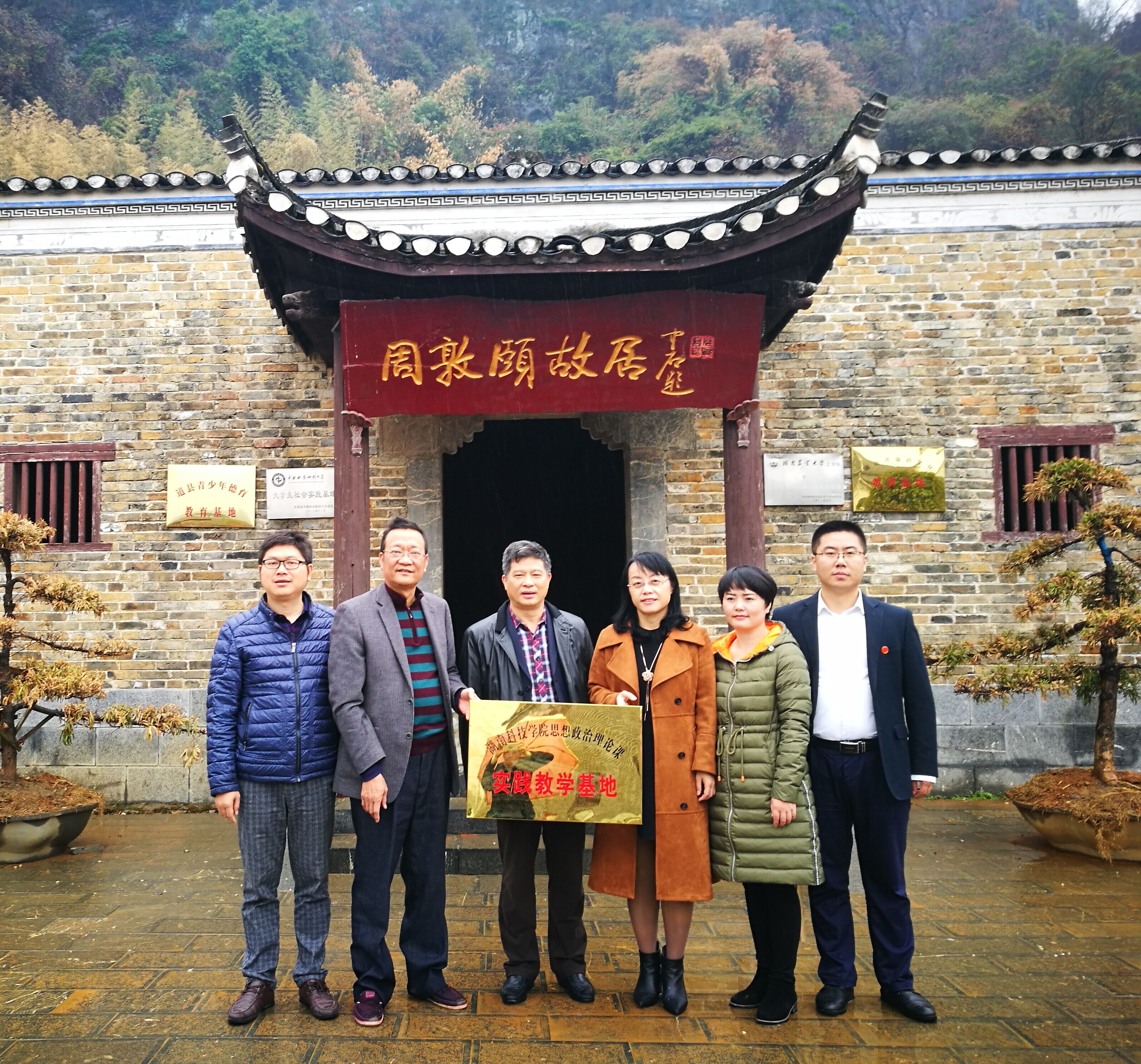 本网讯  近日,学校举行思想政治理论课实践教学基地揭牌仪式。校党委副书记唐艳明、马克思主义学院院长廖雅琴、周敦颐故里风景名胜区管理处主任黄圣贤等出席仪式并为基地揭牌。