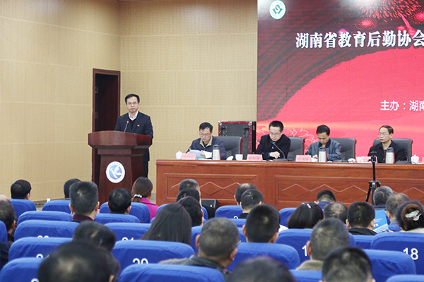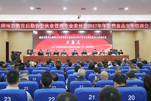 本网讯 11月24日,湖南省教育后勤协会伙食管理专业委员会2017年年会暨食品安全培训会议在校召开,来自全省近70所高校、150余家高校后勤企业代表共400余人参加会议。