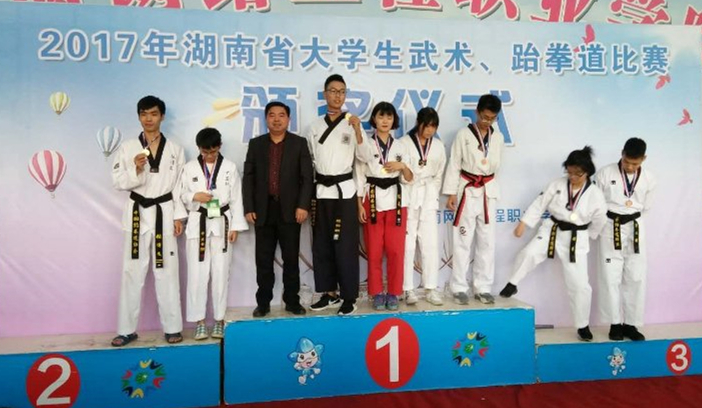 本次比赛是由湖南省教育厅主办,湖南网络工程职业学院承办,湖南省学生体育协会执行。共有来自湖南大学、湖南师范大学、湖南科技大学等26所高校的687名跆拳道运动员参加。体育学院高度重视本次比赛,由龙亚军担任领队,李通、刘剑老师担任教练,积极备战,以最佳状态迎接比赛。经过运动员们的努力拼搏,最终取得了伟德官网参加全省大学生跆拳道比赛的历史最好成绩。
