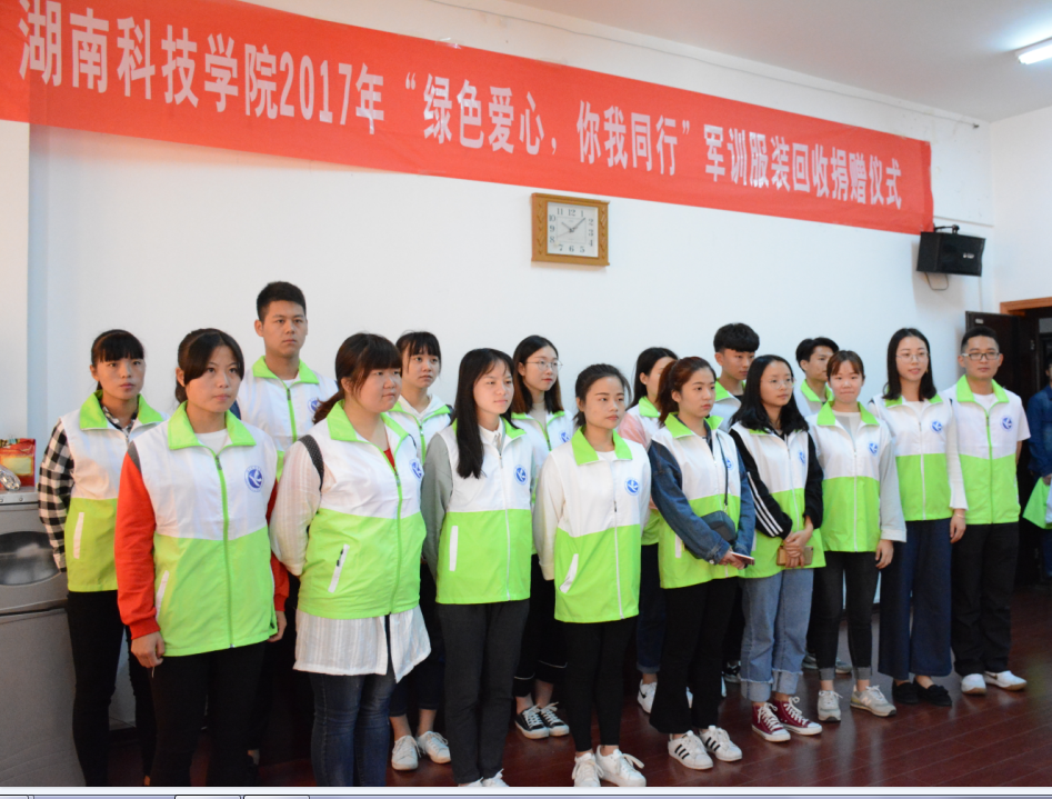 此项活动由理学院青年志愿服务团发起,全校大学生积极热心参与,现已连续开展三年。为避免军训服装被闲置浪费,最大限度发挥军训服装的价值,伟德官网志愿者经过海报、微信推文、QQ动态、食堂设点等各种宣传形式,今年回收到军训服装2000余套。学校青年志愿服务指导中心向永州市义工协会捐赠了该批军训服装,永州市义工协会将把这些军训服装送给贫困地区的学生、贫困户或者是城区的敬老院,让军训服装这一抹“橄榄绿”继续发挥其“余热”。