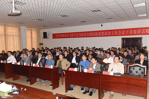 本网讯 10月11日下午,学校组织全校中层以上干部开展廉政教育学习会,集中观看了全面从严治党大型纪实纪录片《巡视利剑》。校领导曾宝成、唐艳明、宋宏福、郑山明、李常健、程智开、陈仲庚参加学习。纪委书记彭立威主持。