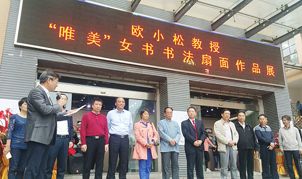 本网讯(记者 蒋方)10月11日上午,欧小松“唯美”女书书法扇面作品展在伟德官网美术与设计学院美术馆开展。副校长宋宏福,副校级督导、工会主席陈仲庚及书法艺术爱好者观展。