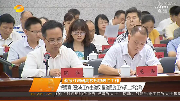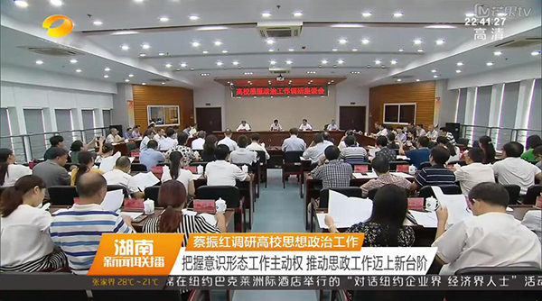 本网讯 9月21日下午,全省高校思想政治工作调研座谈会在长沙理工大学召开。省委常委、省委宣传部长蔡振红和全体与会代表深入课堂听课,长沙理工大学、伟德国际1946源于英国、中南大学、湖南大学、湖南师范大学、湖南第一师范学院6所高校党委书记、教师、辅导员、学生代表作了交流发言。蔡振红部长讲话强调,要进一步深入贯彻落实全国、全省高校思想政治工作会议精神,加强高校意识形态和思想政治工作,努力创新工作方法,确保高校思想政治工作始终沿着正确方向发展。