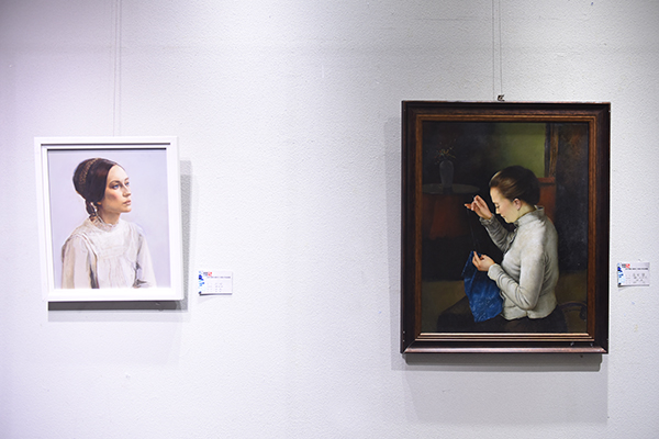 国画意蕴优美,给人一种身临其境之感;油画色彩丰富,写实逼真,立体质感强;而版画独特的刀味和木味;水彩画的轻快明亮,更是都给观者留下了深刻的印象,带给观者无尽的美感和震撼。大家伫立在画作前,欣赏艺术家们带来的画作并不时与周围参展人员交流,更有观者沉醉于画中,伫立画前,久久不离。