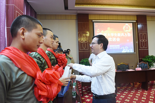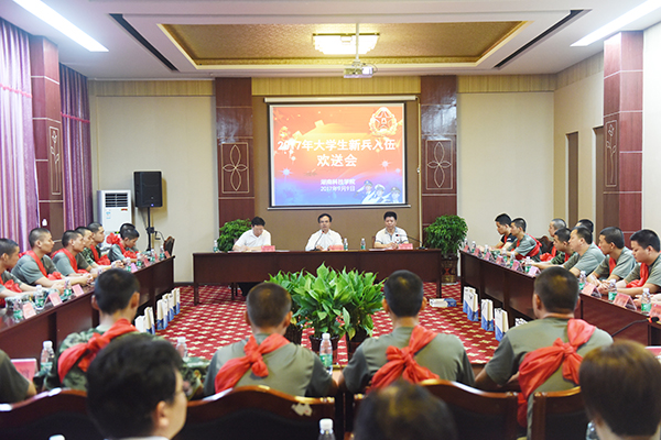 欢送会上,武装部、学工部部长唐华山介绍了伟德官网征兵工作情况。今年伟德官网共有30名大学生顺利通过体检、政治考核,如愿入伍。其中,7名应届毕业生,23名在校学生。