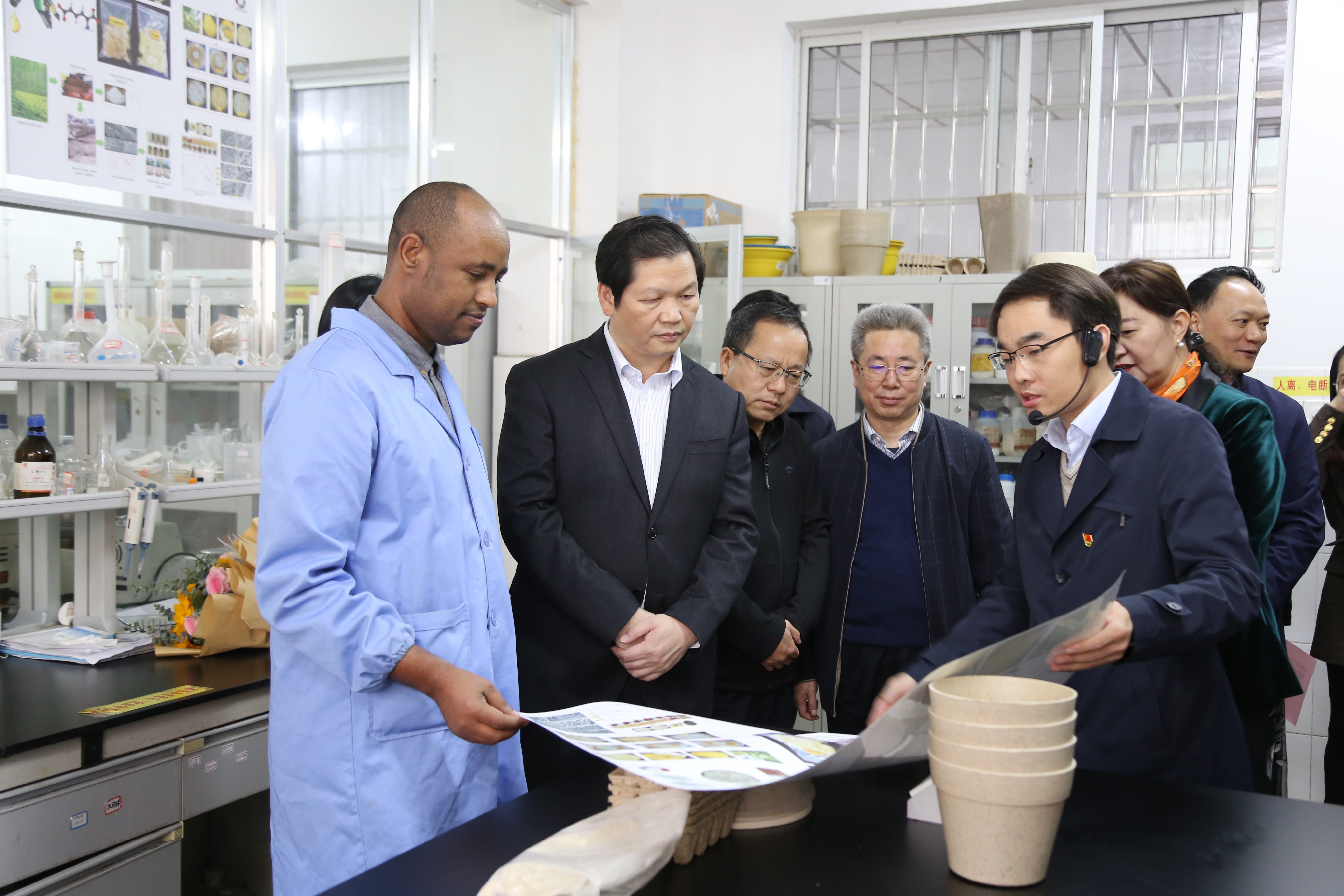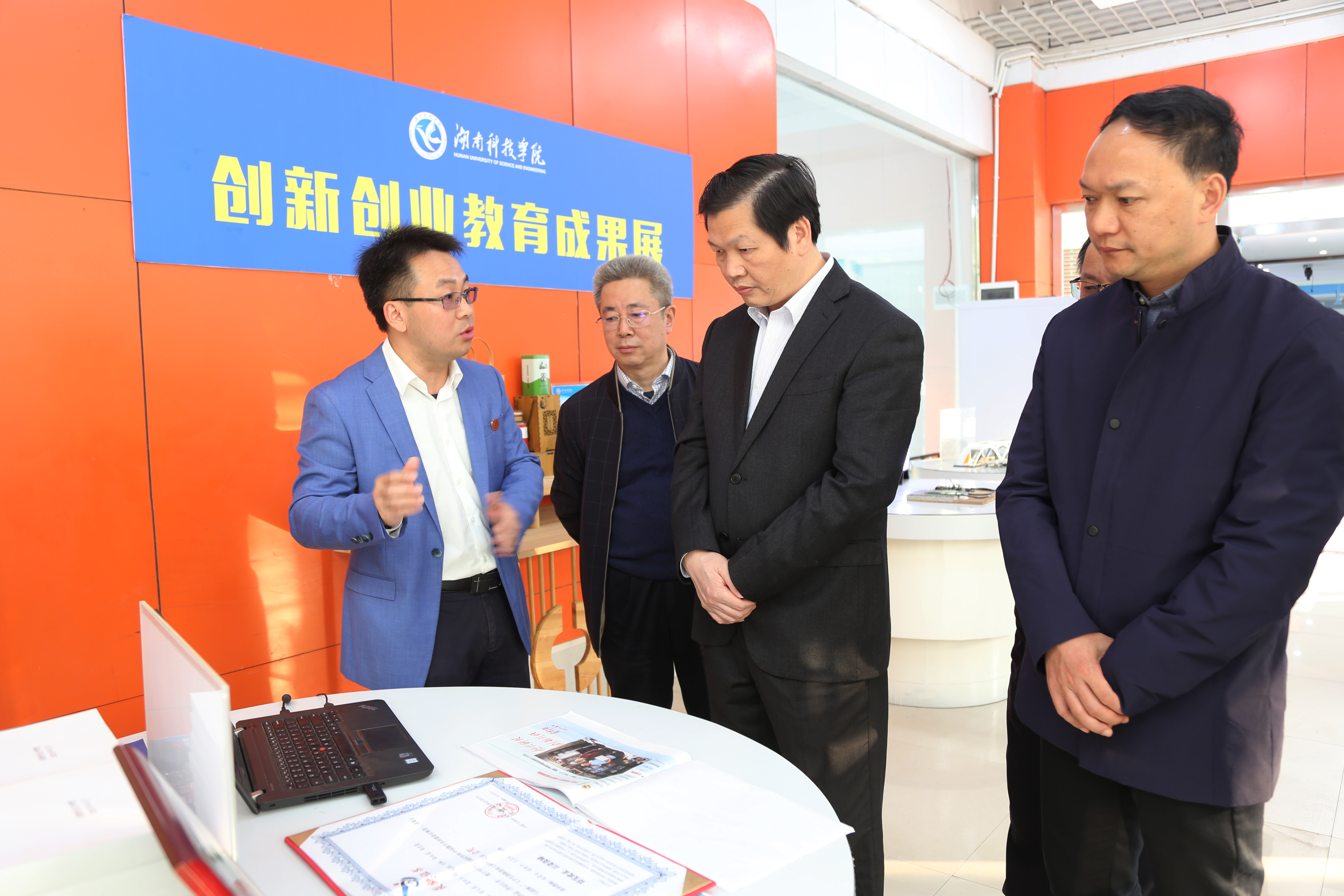 曾立新一行考察了伟德官网创新创业学院的教育成果展、女书传播展示基地以及化学与生物工程学院的科教创新长廊等地,看望了伟德官网外国专家。