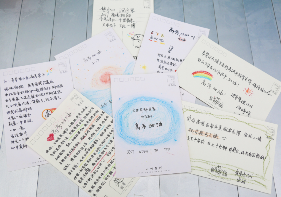 据了解,此次活动共有来自各个学院的近400名同学报名参加,共制作明信片600余张。上午,志愿者们很早便来到了高考考点静候从考场出来的考生们。“去年我高三,我为自己加油,今年我大一,为高三加油!我想告诉那些高三的弟弟妹妹们你们不是一个人在战斗,加油!科院学子陪你一起高考!”参与此次活动的志愿者付婷婷满怀激情地说。
