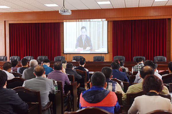 本网讯 4月18日上午,学校在行政办公楼八楼一会议室设立分会场,组织收看省教育脱贫攻坚宣讲视频会议。视频会上,教育部人事司副巡视员彭实代表教育部宣讲《教育脱贫攻坚“十三五”规划》,省教育厅党组成员、省委教育工委副书记夏智伦主持宣讲会。校领导唐艳明、宋宏福、彭立威、郑山明、李常健、吴小林、程智开出席收看。