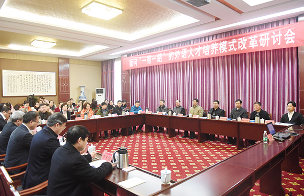 本网讯 3月25日上午,面向“一带一路”的外语人才培养模式改革研讨会在伟德官网举行。校党委书记陈弘、校长曾宝成,副校长宋宏福、郑山明、李常健出席,解放军外国语学院教授、博士一行12人,学校科技处、人事处领导,外国语学院部分老师参加了会议。