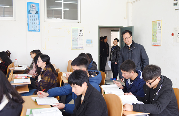 看到师生们精神饱满,课堂气氛活跃,呈现出一派新学期的崭新气象,校党委书记陈弘很是欣慰,他来到明理楼202教室,为了不打扰师生们正常的课堂秩序,陈弘轻声走进教室旁听经济与管理学院的《西方经济学》,听到老师由浅入深的讲解和引人入胜地分析,陈弘很是满意。随后,陈弘又认真细致了解了教学设备、学生到校等方面的情况,与学院负责人就教学管理、人才培养等进行了深入细致地交流。