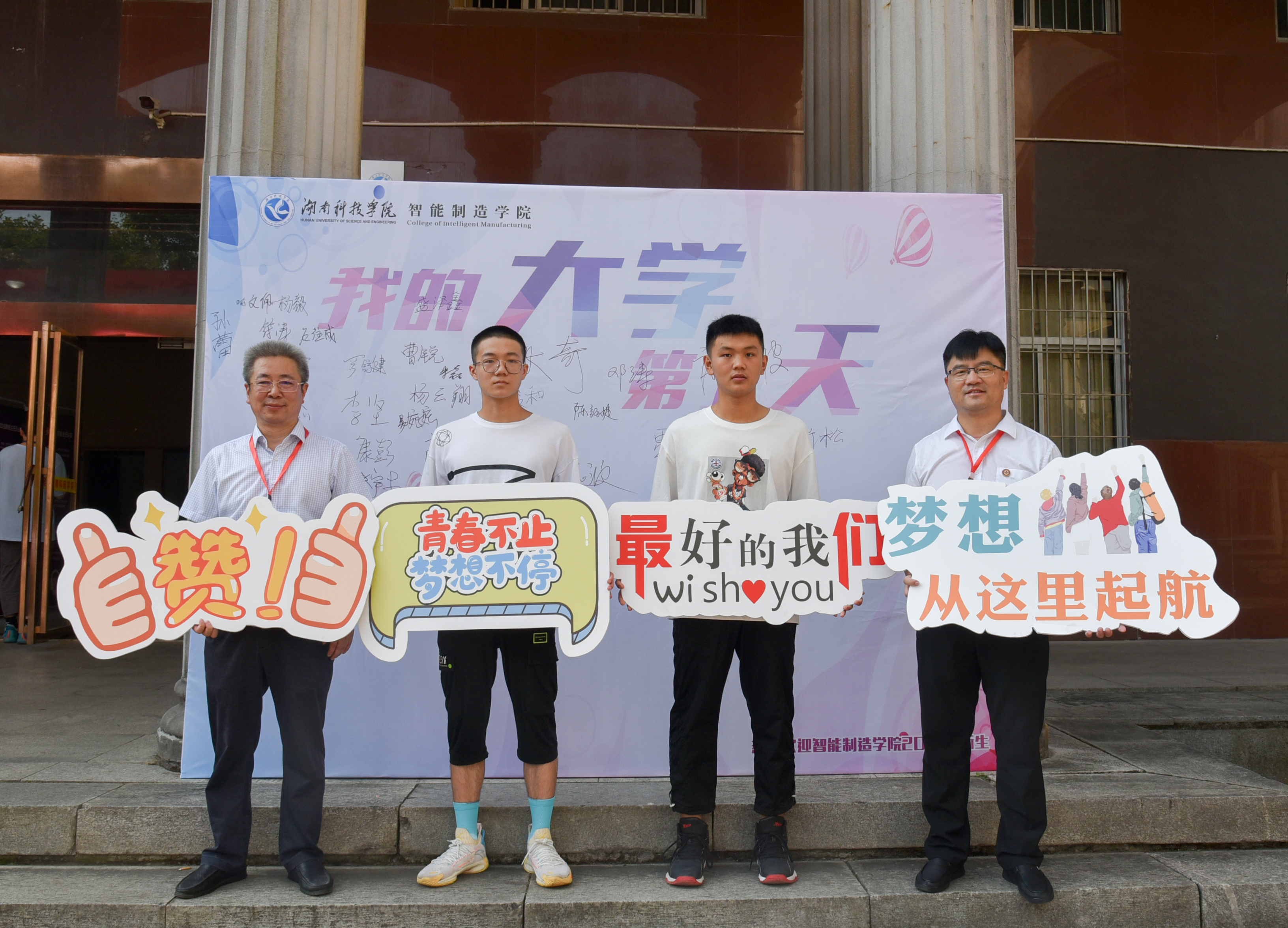 校园内青春昂扬,处处都是迎新的痕迹。“我们身在国旗下,长在春风里。”“科院2021号列车到站,本次停靠时间为四年。”明德楼孔子像旁,学校精心设置了“请党放心,强国有我”的签名展板,众多新生和家长驻足签名并打卡拍照留念。为了做好迎新工作,各学院使尽“浑身解数”,开展了各具特色的迎新活动。化学与生物工程学院在迎新点的各个桌上设置了信息牌,上面贴心地标注了各班班主任和副班的姓名及联系电话,方便新生和家长记录联系,获得校领导的高度点赞。智能智造学院在大厅准备了“超萌”迎新机器人,新生可与机器人对话交谈,其憨厚的外表与可爱的话语让新生们欢笑不断,也趁此了解到专业特色,对之后的大学生活充满期待。