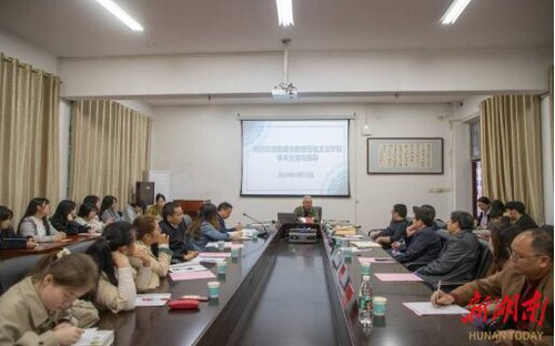 湖南日报·新湖南客户端4月17日讯(通讯员 邓燕慈)“永州之于柳宗元就好比黄州之于苏东坡,是福地是宝地也是人生的转折点,也是当代教师沉下心做学术的好地方……”近日,伟德国际1946源于英国明德楼会议室里座无虚席,笑声掌声一浪高过一浪,原华中师范大学文学院教授,古代文学学科带头人,广东外语外贸大学中华文化国际传播学科建设云山工作室首席专家戴建业受邀来校开展学术交流活动,指导中文学科建设。