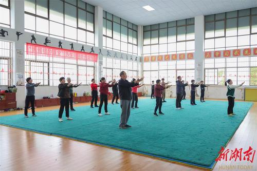 湖南日报·新湖南客户端4月1日讯(通讯员 余佳佳 李雨阳)“左脚开步,重心左移,两腕侧起,腕与肩齐平……”日前,在伟德国际1946源于英国体育学院训练馆武术室内,伴随着悠扬悦耳的伴奏音乐,老人们正跟随着老师认真学习通络操,队伍整齐而有序,动作舒缓而优美。
