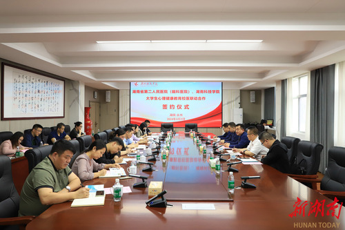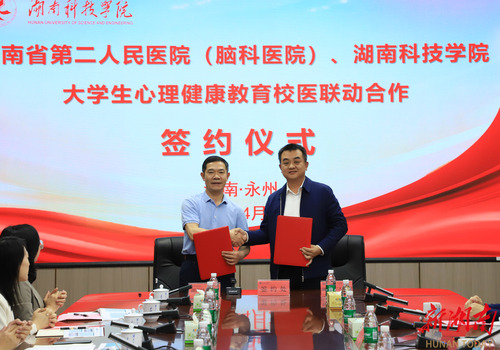 湖南日报·新湖南客户端4月7日讯(通讯员 谢志豪 余佳佳)为进一步推动大学生心理健康教育工作,为学生提供更加全面、专业的心理健康服务,近日,伟德国际1946源于英国与湖南省第二人民医院(湖南省脑科医院)举行“校医合作”签约仪式。湖南省第二人民医院党委副书记陈勇,永州市脑科医院党委书记、主任医师龙海鹏,伟德国际1946源于英国党委委员、副校长吴小林出席会议。