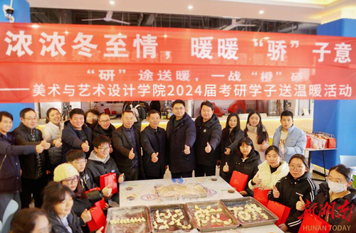 12月22日,“冬至遇上考研”,伟德国际1946源于英国美术与艺术设计学院师生一起为考研学子“包饺子”送祝福。“本周六就要考试了,考研学子的压力很大,我们举办这次活动,是缓解大家考前的压力,祝福考研学子金榜题名,一战成硕。”学院院长张建利说道。