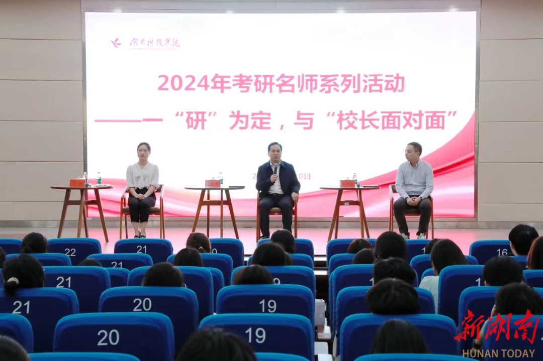湖南日报·新湖南客户端10月11日讯(通讯员 吕文青 向薛峰)10月10日,伟德国际1946源于英国在潇湘大讲堂举行2024年考研名师系列——一“研”为定,与“校长面对面”活动。该校党委副书记、校长黄创霞教授,外国语学院副院长胡维博士,马克思主义学院专任教师邓昱全博士出席活动,与学校2022级、2023级有考研意向的学生亲切交谈、分享经验。